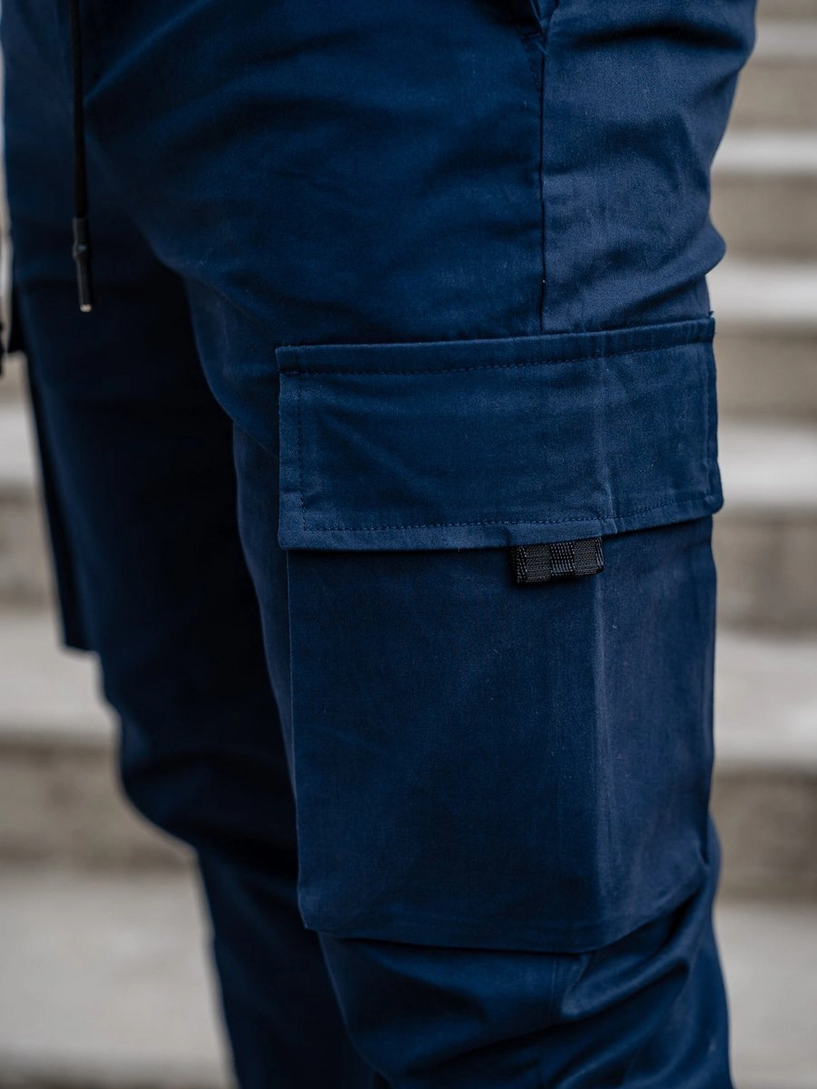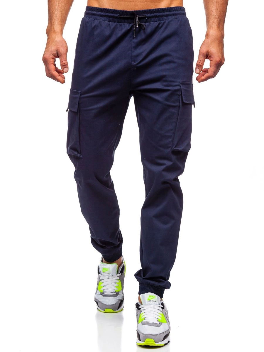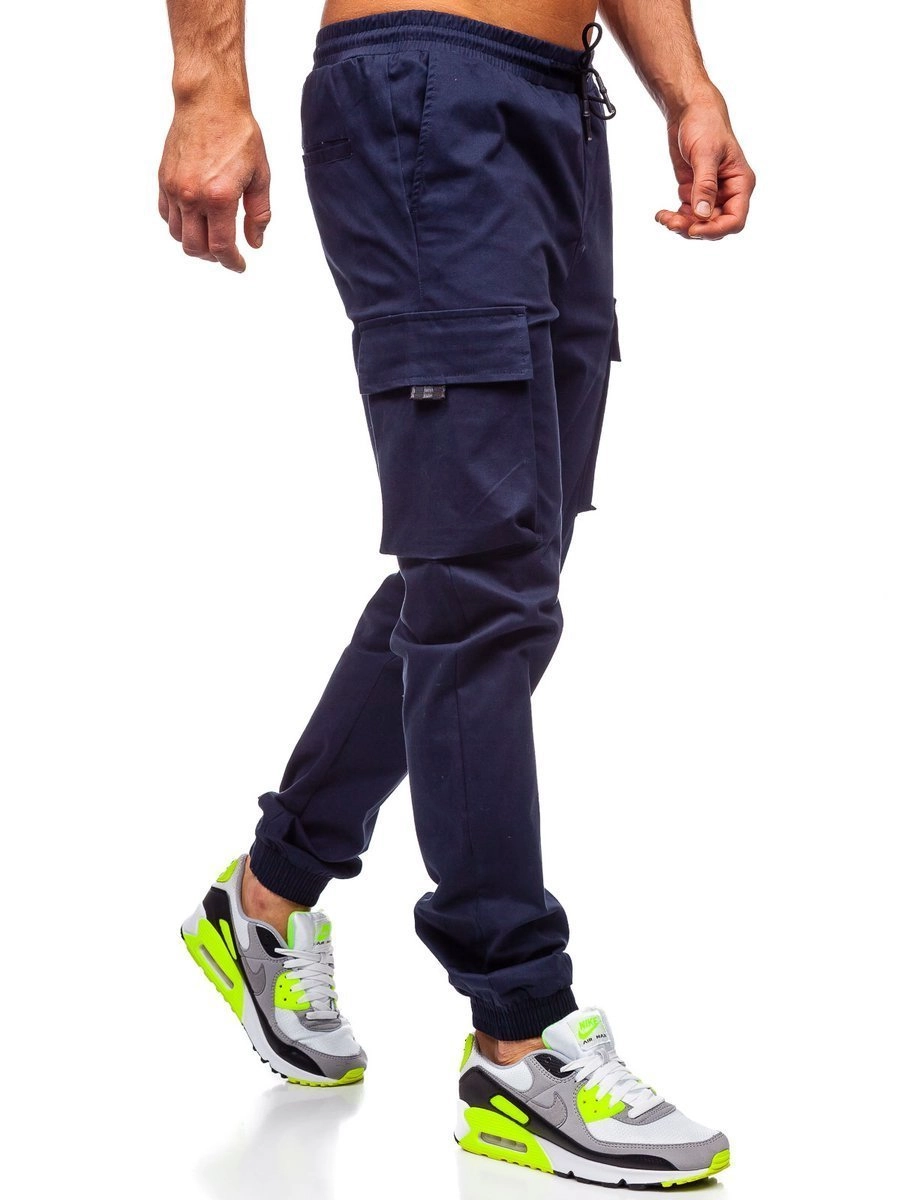 Snygga och sköna marinblå herr cargo joggers 701 från Bolf-kollektionen. Den presenterade modellen finns i många olika färger. Detta par regleras i midjan. Det finns två fickor på framsidan och två med klaffar på sidorna. Den avslappnade looken tillhandahålls av den raka designen ribbade benen. Det passar perfekt till urbana och avslappnade kläder. Perfekta till vardags, kombinera dom gärna med en sweatshirt, T-shirteller enlongsleeve. Kombinera med en läderjacka, bomberjackaeller en sportig värst. Det fungerar perfekt på kontoret, på ett möte med vänner, på promenad eller shopping.