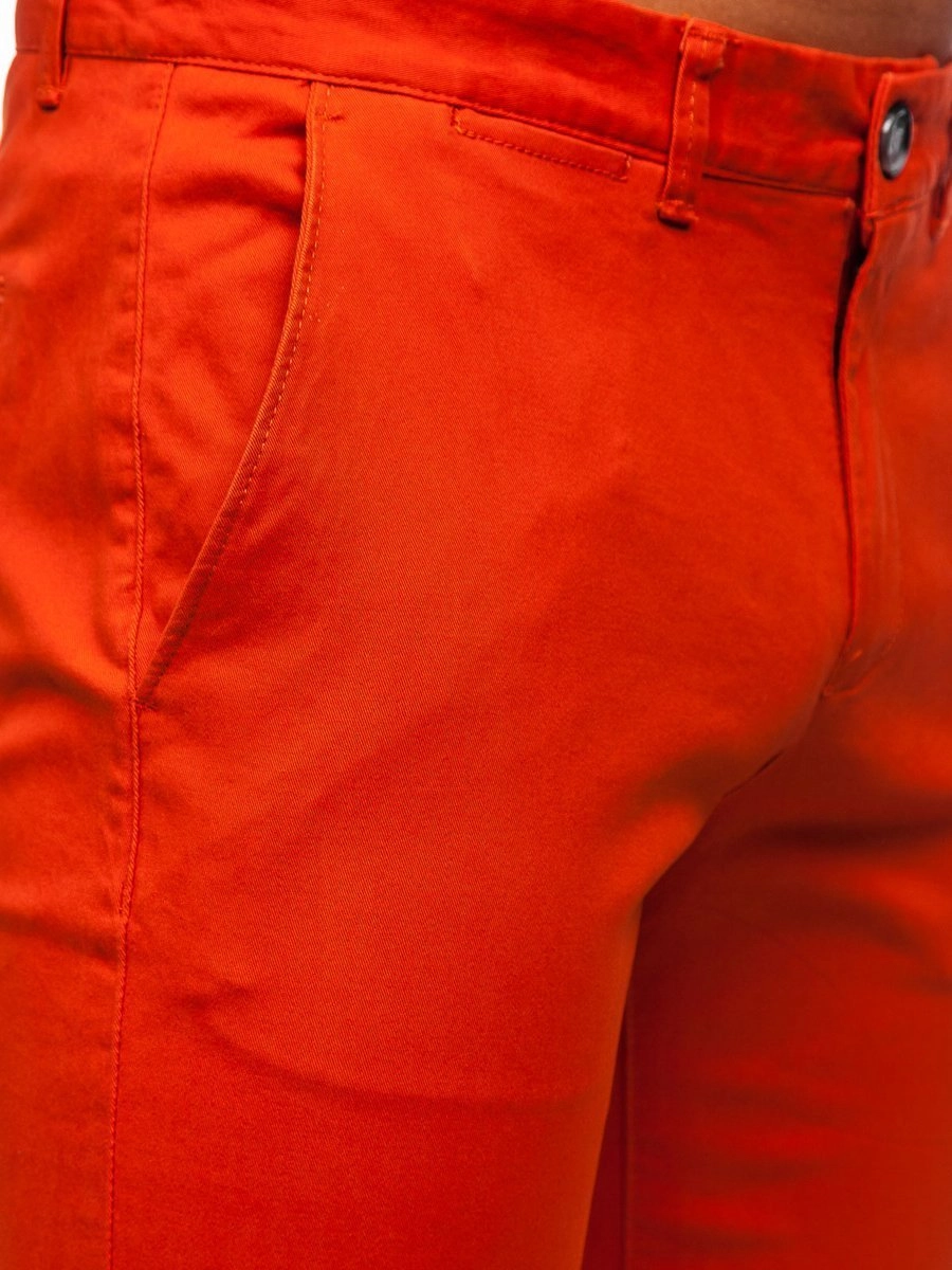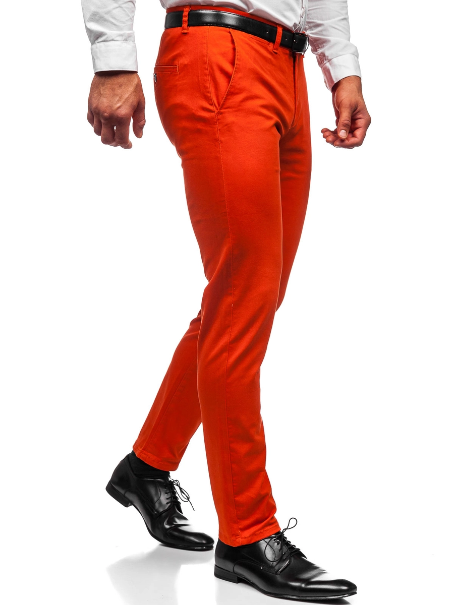Snygga och sköna orangea herr chinobyxor 1143 från Bolf-kollektionen. En klassisk design - ett måste i varje garderob. Den presenterade modellen finns i olika färger och mönster. Dessa byxor är avsmalnande och utrustade med knäppta fickor baktill. Detta par är tillverkat av högkvalitativ bomull av hög kvalitet. Det finns ett blixtlås och en knapp. Bär dom gärna tillsammans med skjorta och en kavaj eller en T-shirt och en långärmad topp and a flanellskjorta.