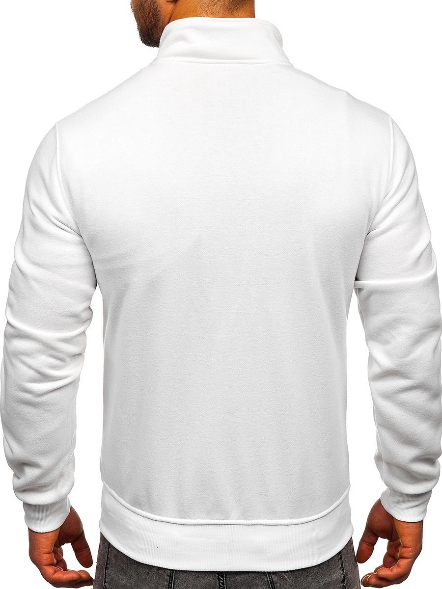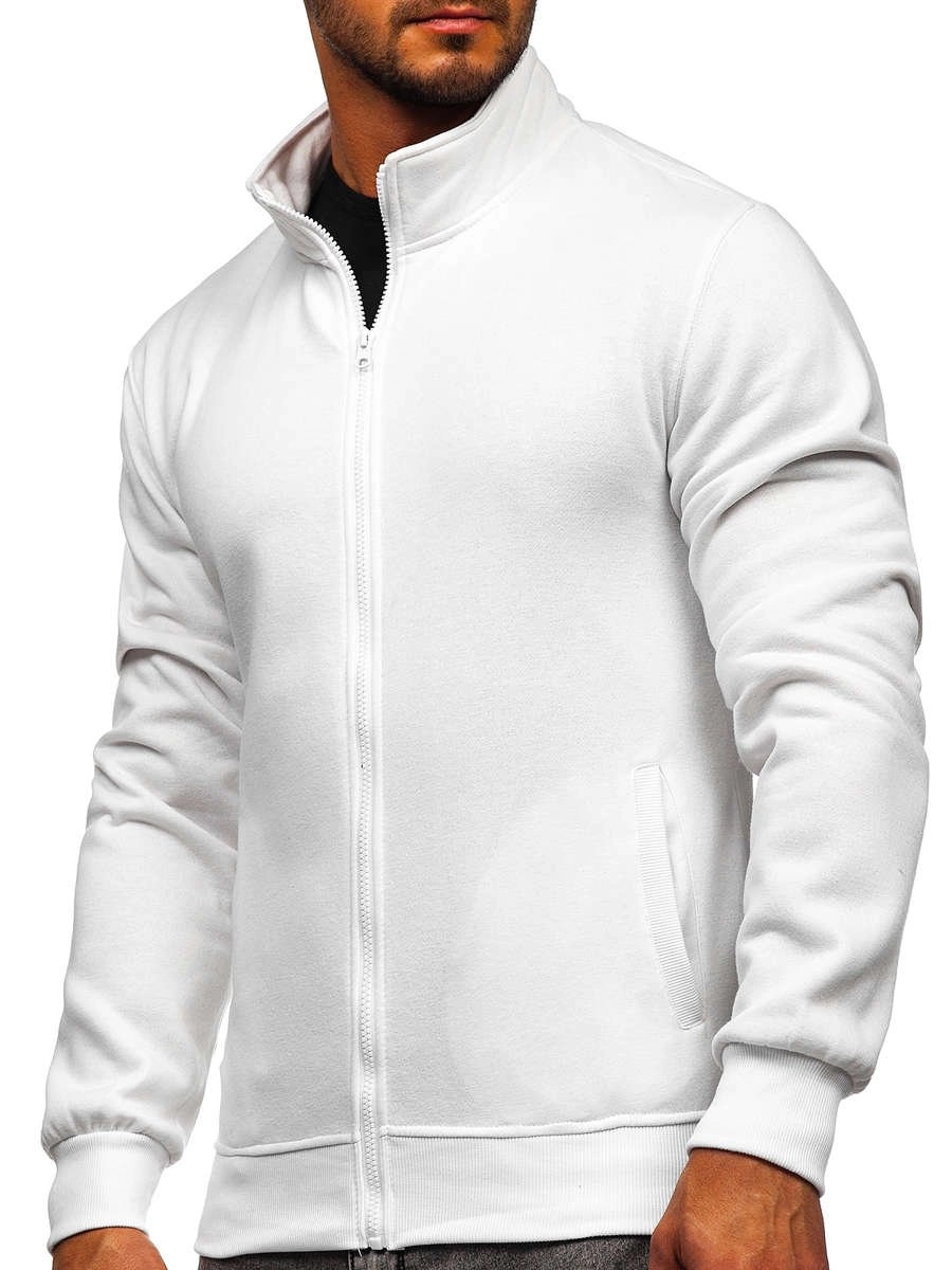 Fantastisk vit herrsweatshirt med ståkrage och dragkedja B2002 från Bolfs kollektion. Tröjan har en ståkrage och stängs med dragkedja. Dess två utvändiga fickor utan stängning gör den än mer praktisk. Tack vare muddarna nertill och på ärmarna anpassar den sig perfekt efter kroppen. Den finns i flera olika snygga färger vilket gör att du kan sticka ut med en unik stil varje dag. Denna tröja gör det möjligt att skapa många olika och annorlunda stilar. Använd den till skolan, arbetet eller när du tränar. Perfekt i en sportig stil ihop med en T-shirt och sweatpants.