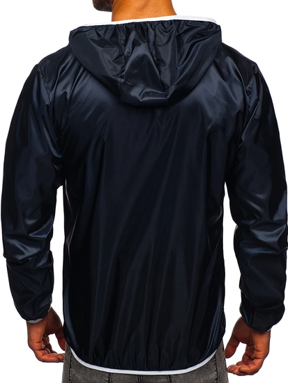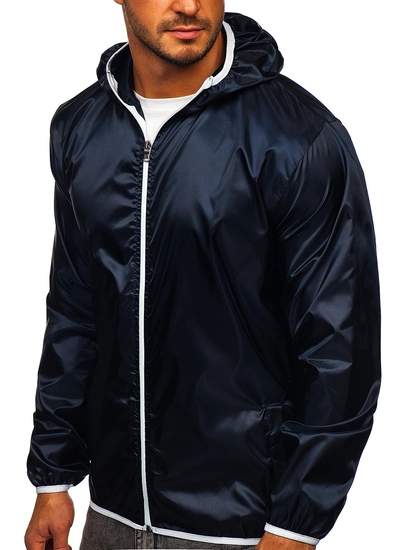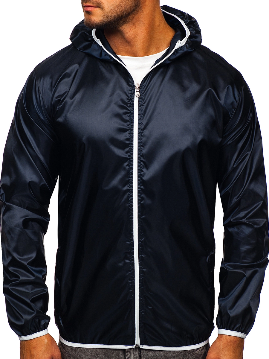 Marinblå herr lättviktsjacka 5060 från Bolf-kollektionen. Ger bra skydd mot regn och vind.. Den är tillverkad av högkvalitativ 100% polyester. Den presenterade modellen har en justerbar huva och två ytterfickor. Ärmarna är ribbade med en elastisk trims.