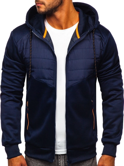 Snygg marinblå herrlättviktsjacka KS2149 från Bolfs kollektion. Den har dragkedja och en huva fäst vid kragen. Den är vadderad för att ge den en sportig stil. Nertill och på ärmarna finns en ribbning, vilket gör att den passar de flesta kroppsformer. Den är tillverkad av 100% polyester. Den har två praktiska ytterfickor med dragkedja. Tack vare dess mångsidighet kan den lätt matchas med många olika stilar. Perfekt för en promenad, en träff med kompisarna eller för en shoppingtur. Jackan passar perfekt till ett par chinos eller ett parsweatpants.