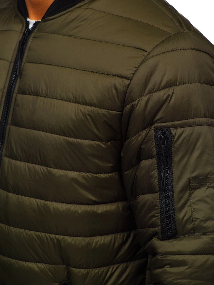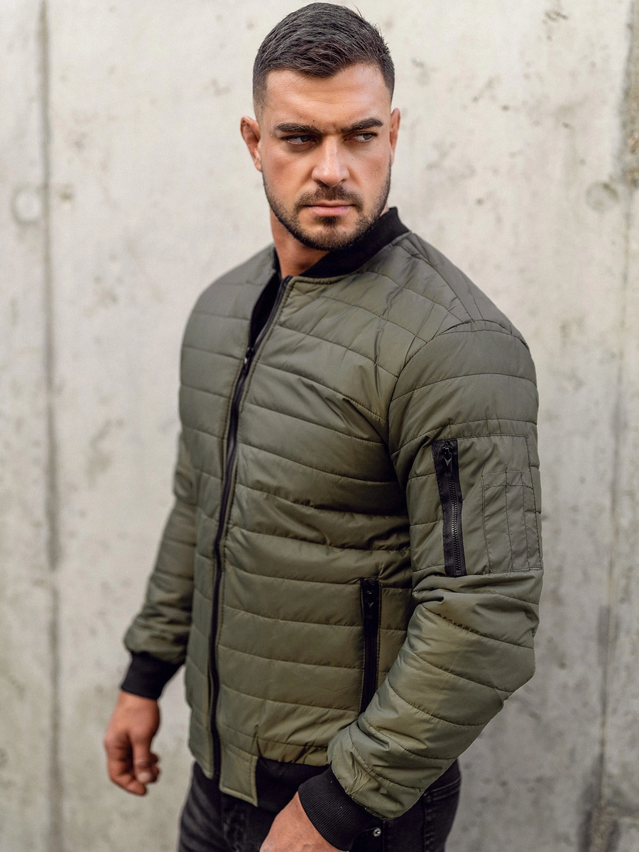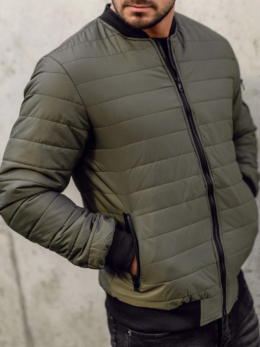 Kaki herr lättviktsjacka bomber MY-02 från Bolfs kollektion. Dragkedjestägning. Passar lika bra till vardags som under träningspasset. Stå upp krage. Den har två fickor med dragkedja och ytterligare en på ärmen. Ribbade muddar på ärm och nertill. Passar flertalet olika stilar. Färgerna gör den lätt att matcha med andra kläder. Kombinera gärna med sweatpants, jeans eller ett par joggers.