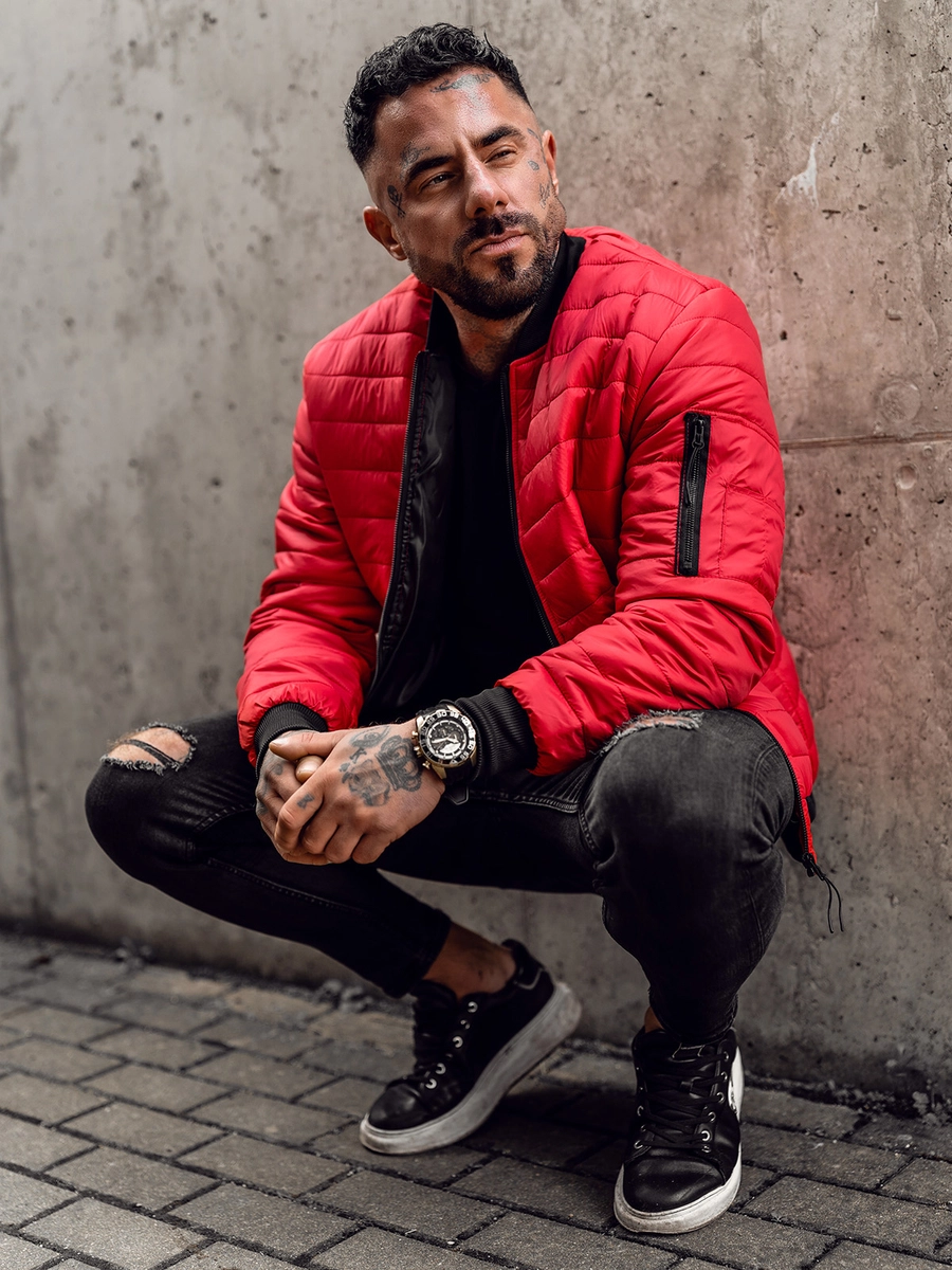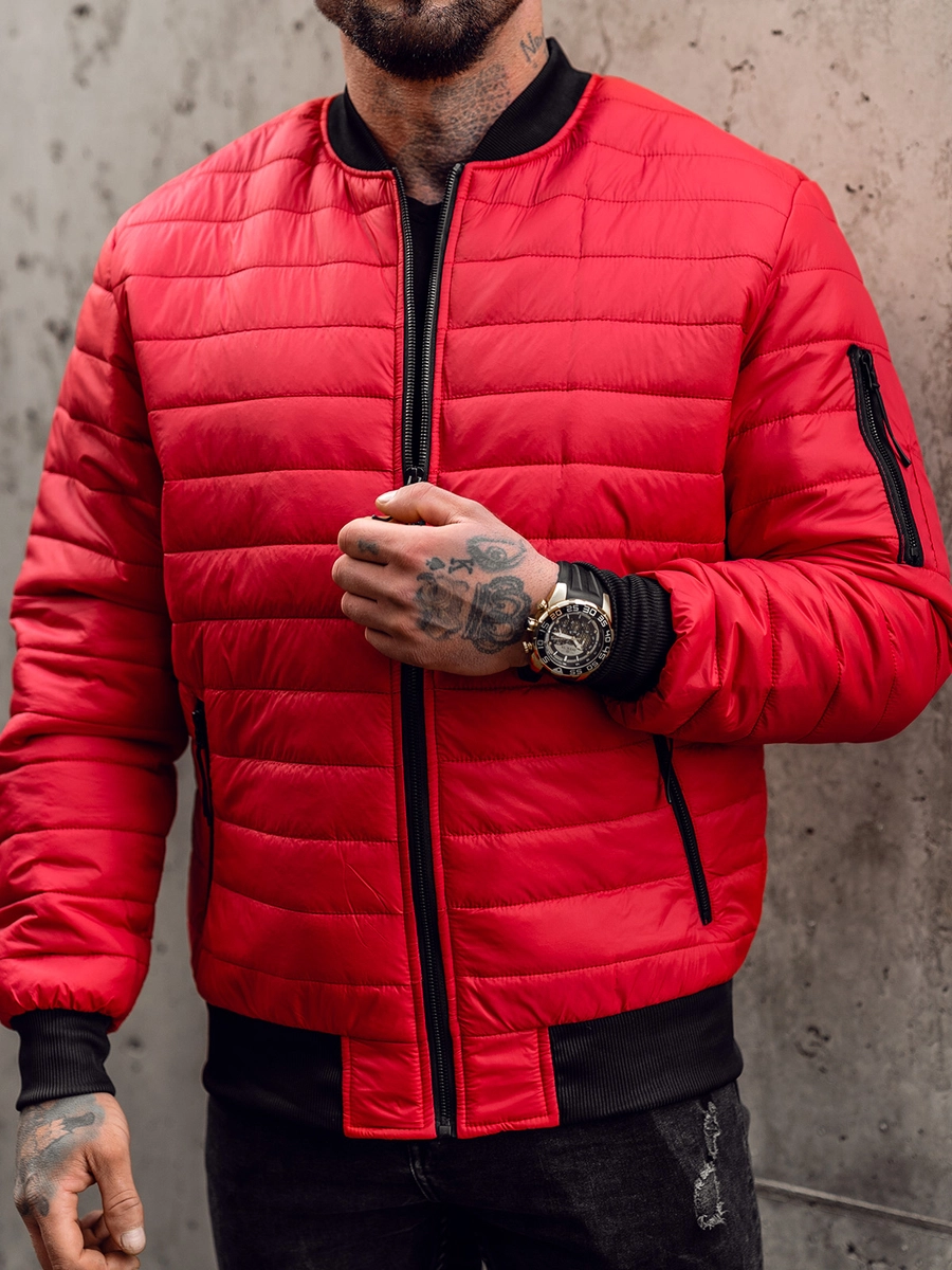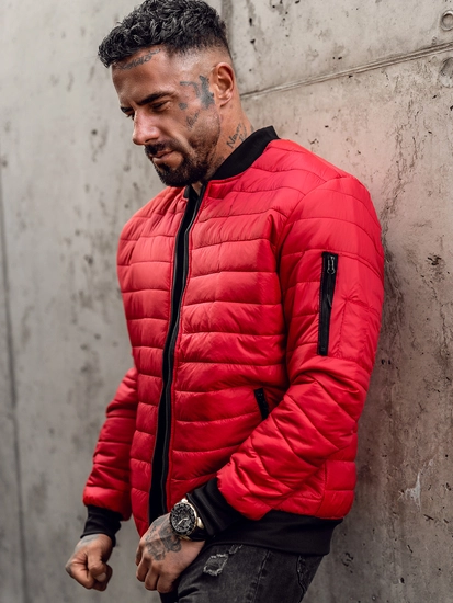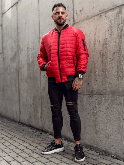 Röd herr lättviktsjacka bomber MY-02 från Bolfs kollektion.. Dragkedjestägning. Passar lika bra till vardags som under träningspasset. Stå upp krage. Den har två fickor med dragkedja och ytterligare en på ärmen. Ribbade muddar på ärm och nertill. Passar flertalet olika stilar. Färgerna gör den lätt att matcha med andra kläder. Kombinera gärna med sweatpants, jeans eller ett par joggers.
