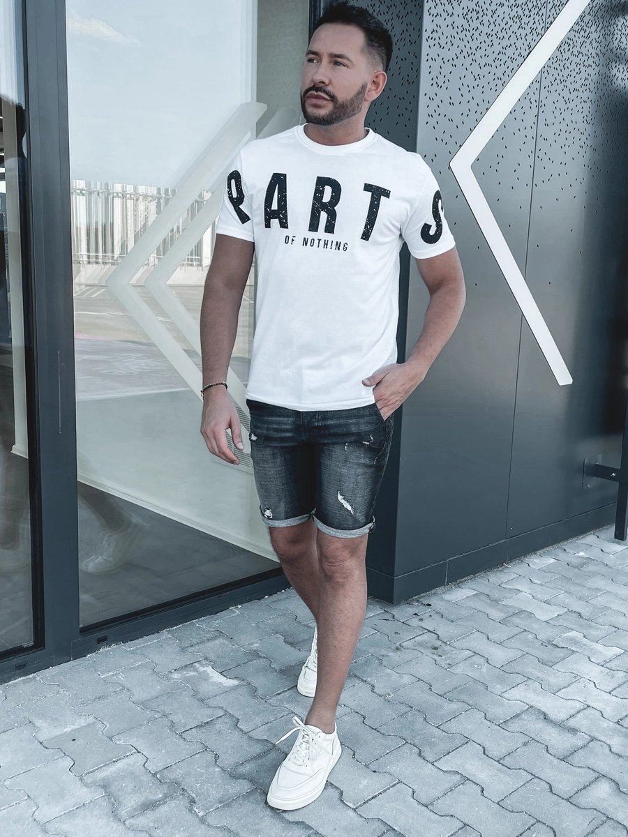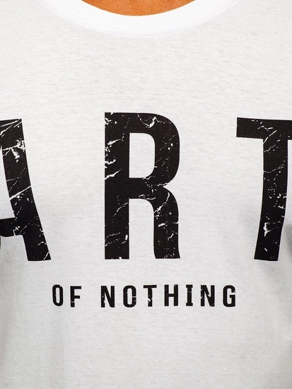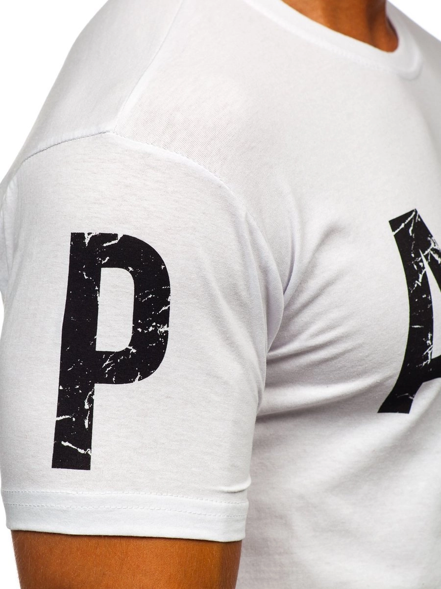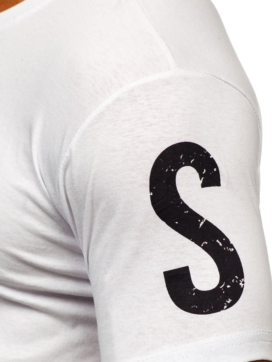 Unik vit herrtryckt T-shirt 1180 från Bolf-kollektionen. T-shirten är gjord av 100% bomull vilket gör den väldigt skön och behaglig att ta på. Den är bekväm att bära och framhäver figuren väl. Designtrycket på framsidan ger den en moderiktig karaktär och fångar ögat. Tack vare den enhetliga, klassiska färgen är skjortan lätt att kombinera med andra klädesplagg. Med en läderjacka och joggingbyxor kan du enkelt skapa en moderiktig, urban look.