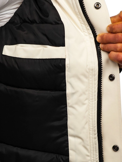 Bästsäljande vit herr vinterjacka Denley J1905 från Bolfs kollektion. Jackan är extremt varm och snygg. Färgerna är snygga och den har inlägg på axlarna och ärmarna. Det finns ett blixtlås och starka knappar. Huvan har dragsko samt kardborre-reglering. Två utvändiga fickor med dragkedja samt en inneficka. Passar till flertalet stilar och andra klädesplagg. Jackan är väldigt varm och praktisk. Använd med ett par joggers, jeans, cargobyxor eller sweatpants. Lägg till en klassisk sweatshirt, en polotröja eller en tröja.