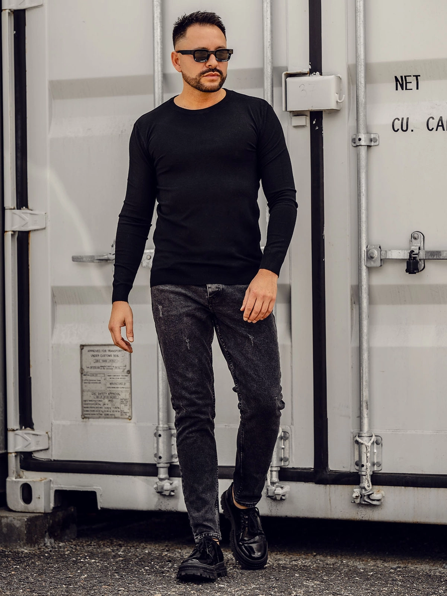 Klassisk svart herrtröja YY01 från Bolfs kollektion. Den har en klassisk rund halsringning. Nertill och på ärmarna finns en ribbning, vilket gör att den passar de flesta kroppsformer och är väldigt bekväm. Den här modellen finns i nio olika färger, så du hittar definitivt en som passar. De många olika färgerna att välja på gör att tröjan passar både till ljusare och mörkare outfits. Använd den till skolan, arbetet, på promenaden eller en date - den passar oavsett tillfälle. En klassisk tröja passar bra med chinos och en skinnjacka, för att skapa den perfekta stilen när du ska träffa dina vänner. Passar bra ihop med ett par joggers och en bomberjacka för att skapa en ledig stil på kvällspromenaden