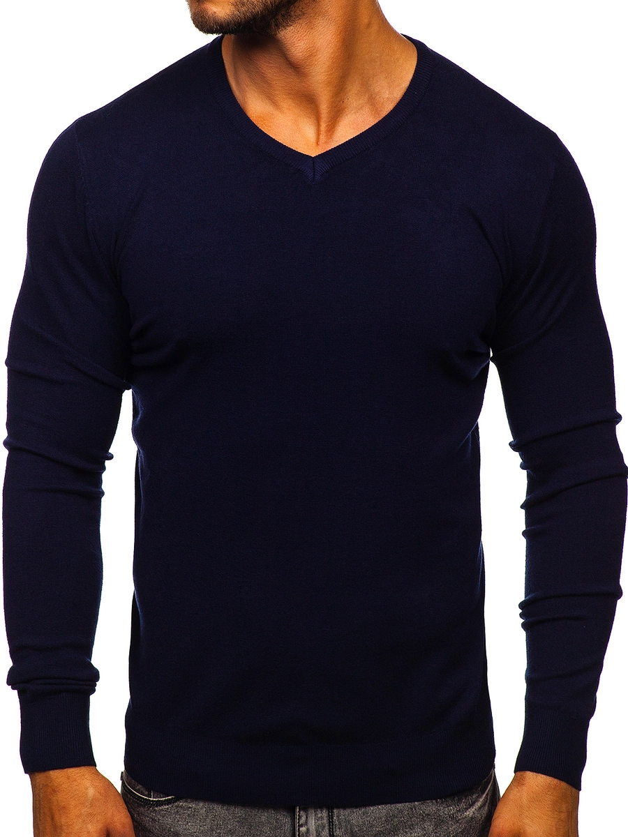 Klassisk marinblå v-ringad herrtröja YY03 från Bolfs kollektion. Den har en fin v-ringning med ribbning. Ribbningen finns också nertill och på ärmarna vilket ger den en väldigt fin silhuett. Den är gjord av ett delikat och bekvämt tyg som sitter perfekt på kroppen. Materialet är 32% akryl, 27% polyester, 23% nylon och 18% viskos. Den finns i fler än tio olika färger vilket gör att den lätt matchas med olika kläder och stilar. Använd den till skolan, arbetet, på promenaden eller en date - tack vare alla färger kan du se annorlunda ut varje dag. En klassisk tröja som passar perfekt till jeans och en skinnjacka, den skapar den perfekta outfiten. Du kan ha den till ett par joggers och en sweatshirt för en ledigare stil.