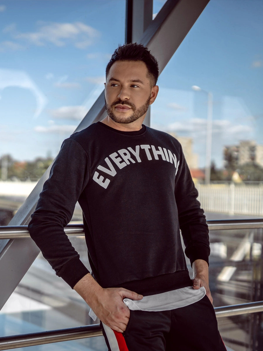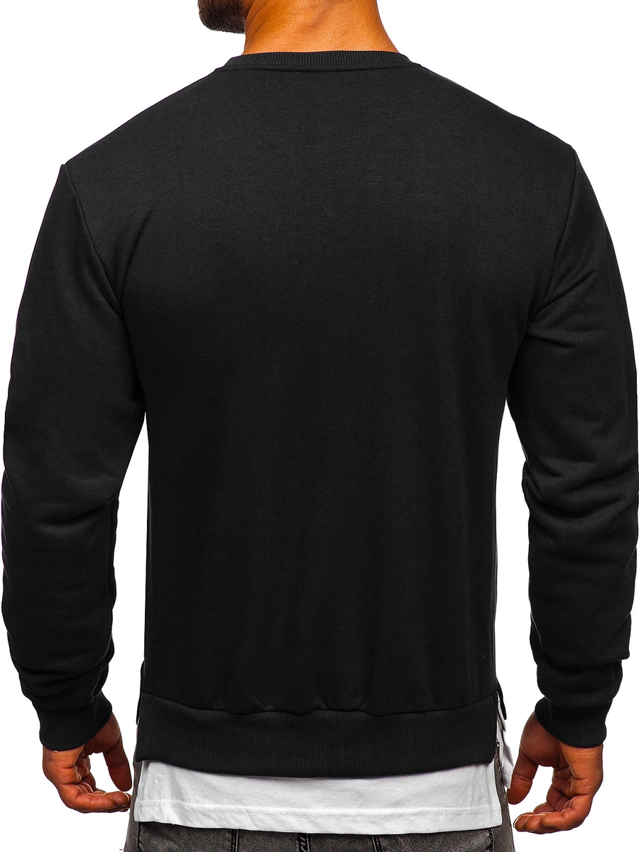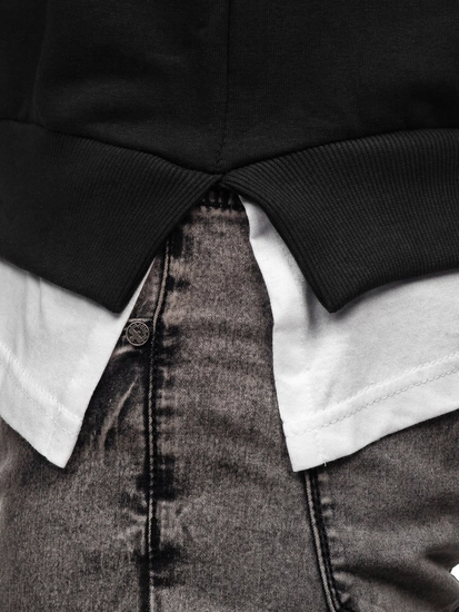 Svart herr sweatshirt 181905 från Bolf kollektionen. Den har ett designertryck på bröstet. Ärmarna har elastiska muddar vilket gör att den kan rullas upp till önskad längd. Den har inte någon huva. Botten är avslutad med en kant, så din siluett kommer att framhävas tydligt. Tröjan är avsedd för fans av sportstil. Passar till: gym, jogging, promenader. Det behagliga materialet gör den perfekt för den tuffaste träningen och kommer att möta förväntningarna hos även de mest krävande användarna. Produkten kan bäras under höst- eller vinterjogg i parken eller skogen. Den passar även perfekt för en lång höstpromenad. Det kommer att vara perfekt för möten med vänner i staden. Matcha det gärna med joggare, joggare eller chinos. Ett enkelt och elegant snitt gör att den lätt kombineras med andra kläder. Avsaknaden av huva gör att tröjan kan passa till lite mer formella sammanhang. Den finns i flera färgvarianter, så den kan matchas till olika delar av din garderob. Den passar bra både till lite mer diskreta och till mer utmärkande outfits. Styrkan är mångsidigheten, den kan användas både till träning och i mer sociala sammanhang. Den består av 65% bomull och 35% polyester. Den ser perfekt ut i sommar- och vinterkläder. Den finns i flera färger och storlekar, vilket gör den till ett måste i garderoben för en krävande man som uppskattar komfort och stil.