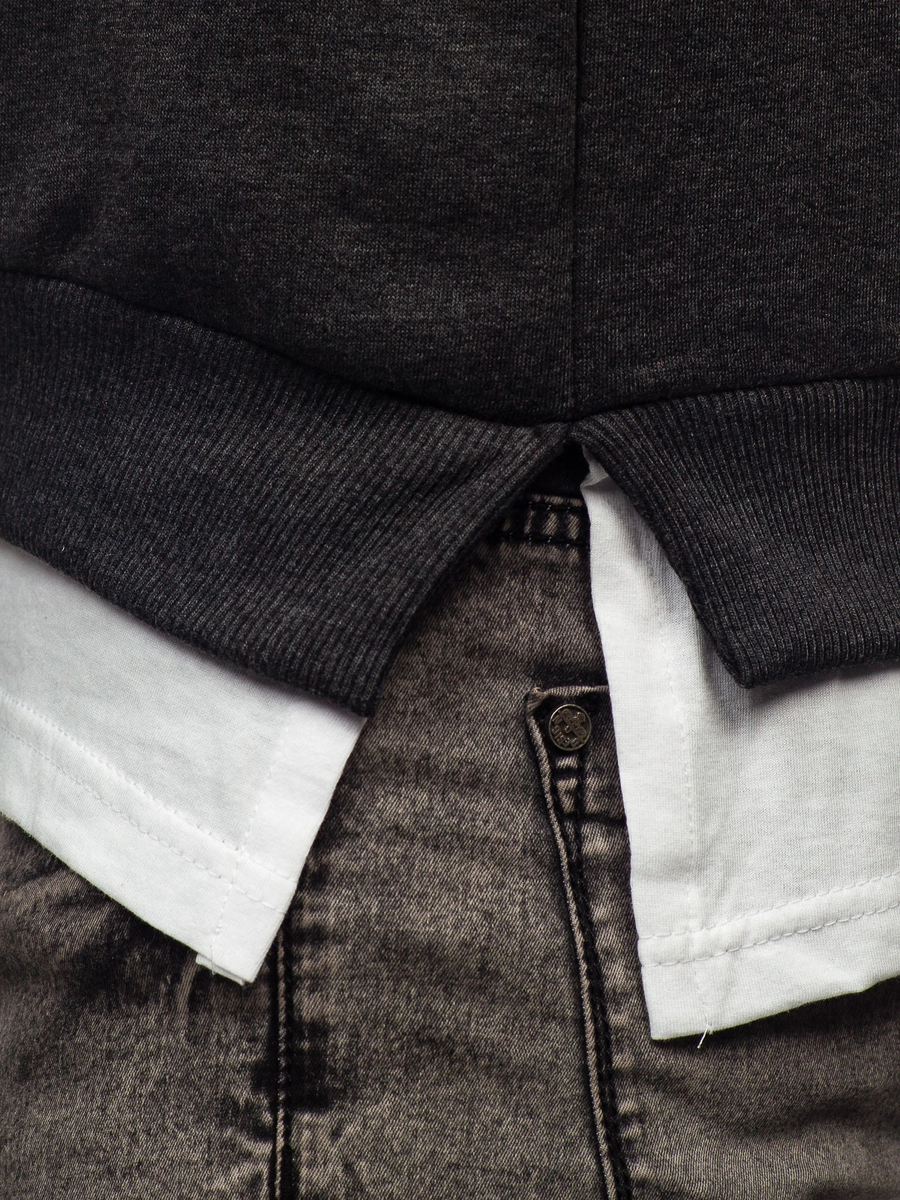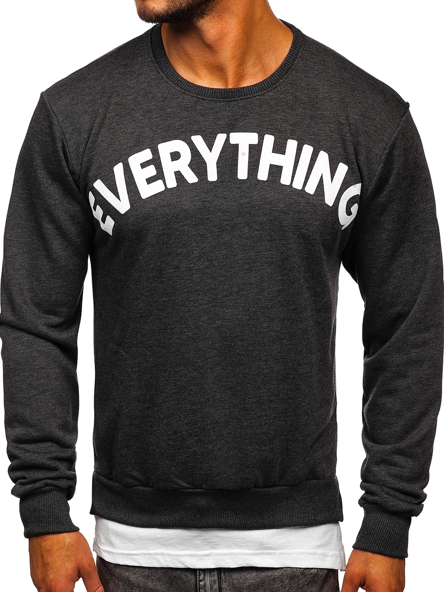 Snygg grafitgrå herr sweatshirt 181905 från Bolf-kollektionen. Den har ett designertryck på bröstet. Ärmarna har elastiska muddar vilket gör att den kan rullas upp till önskad längd. Den har inte någon huva. Botten är avslutad med en kant, så din siluett kommer att framhävas tydligt. Tröjan är avsedd för fans av sportstil. Passar till: gym, jogging, promenader. Det behagliga materialet gör den perfekt för den tuffaste träningen och kommer att möta förväntningarna hos även de mest krävande användarna. Produkten kan bäras under höst- eller vinterjogg i parken eller skogen. Den passar även perfekt för en lång höstpromenad. Det kommer att vara perfekt för möten med vänner i staden. Matcha det gärna med joggare, joggare eller chinos. Ett enkelt och elegant snitt gör att den lätt kombineras med andra kläder. Avsaknaden av huva gör att tröjan kan passa till lite mer formella sammanhang. Den finns i flera färgvarianter, så den kan matchas till olika delar av din garderob. Den passar bra både till lite mer diskreta och till mer utmärkande outfits. Styrkan är mångsidigheten, den kan användas både till träning och i mer sociala sammanhang. Den består av 65% bomull och 35% polyester. Den ser perfekt ut i sommar- och vinterkläder. Den finns i flera färger och storlekar, vilket gör den till ett måste i garderoben för en krävande man som uppskattar komfort och stil.