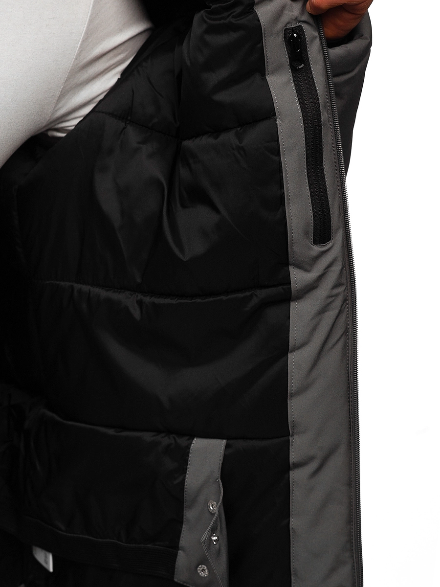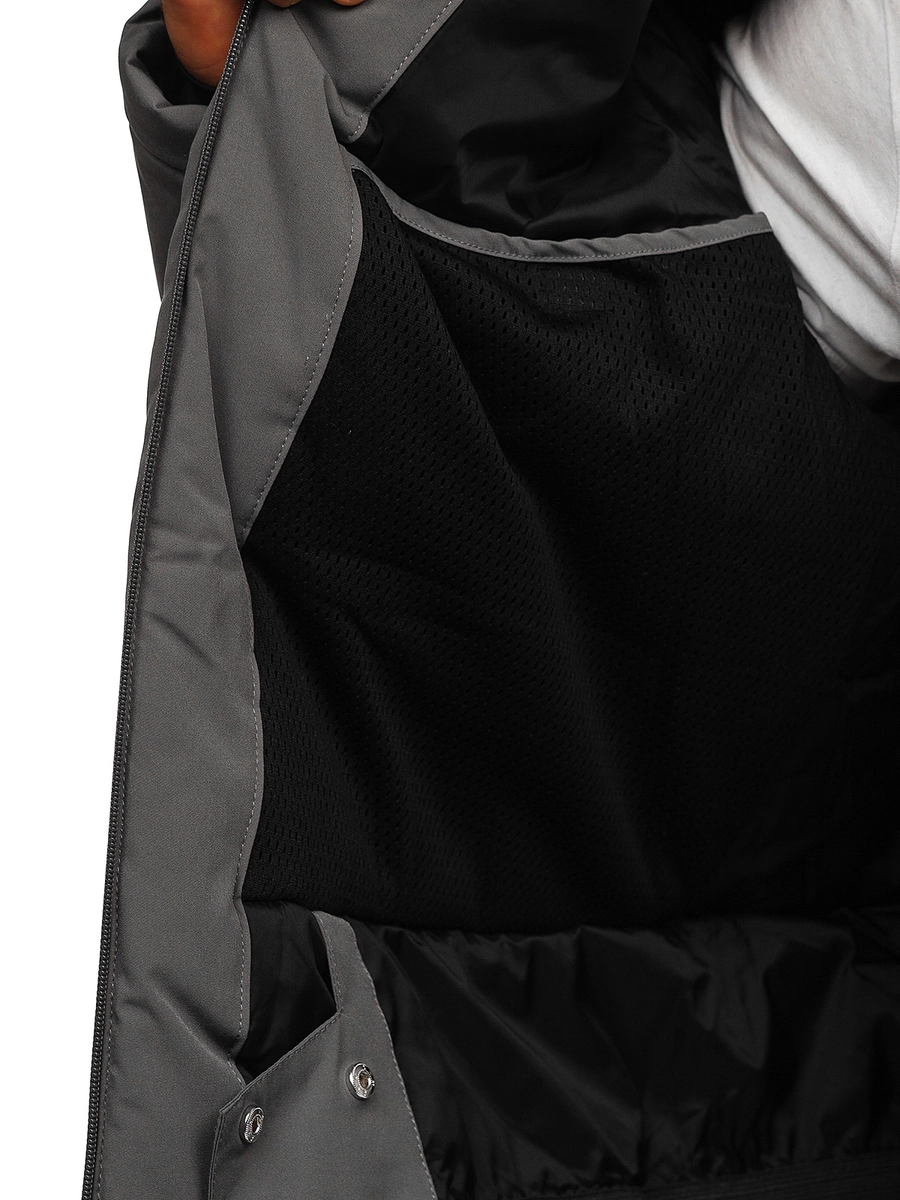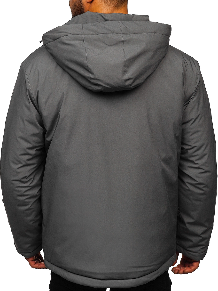Klassisk grafitgrå herr sportig vinterjacka HH011 från Bolf kollektionen. En vinterjacka med huva passar alla smaker. Den stängs med dragkedja. Huvan är avtagbar och har 2D reglering. Den höga kragen med dragkedja skyddar utmärkt mot kylan. En praktisk detalj med jackan är fickorna: två sidofickor med dragkedja, bröstfickan har också dragkedja och därtill två invändiga fickor, en med kardborre. Ärmarna är justerbara med kardborre och invändigt finns en elastisk mudd med tumhål. Produkten är väldigt användbar, den passar till träning, promenader, turen in till stan eller på vandingen i bergen. Den är tillverkad av 94% polyester och 6% elastan. Den passar jättebra med jeans eller sweatpants.