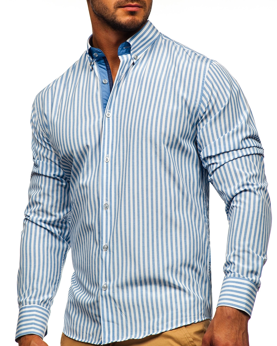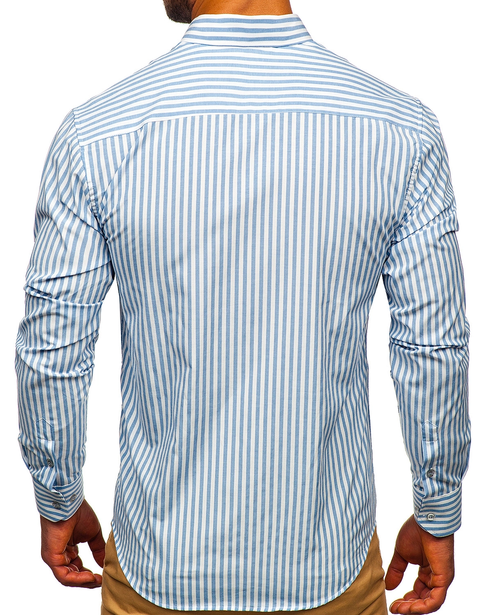 Feedback från kunder Herr Randig Långärmad Skjorta Marinblå Bolf 20704