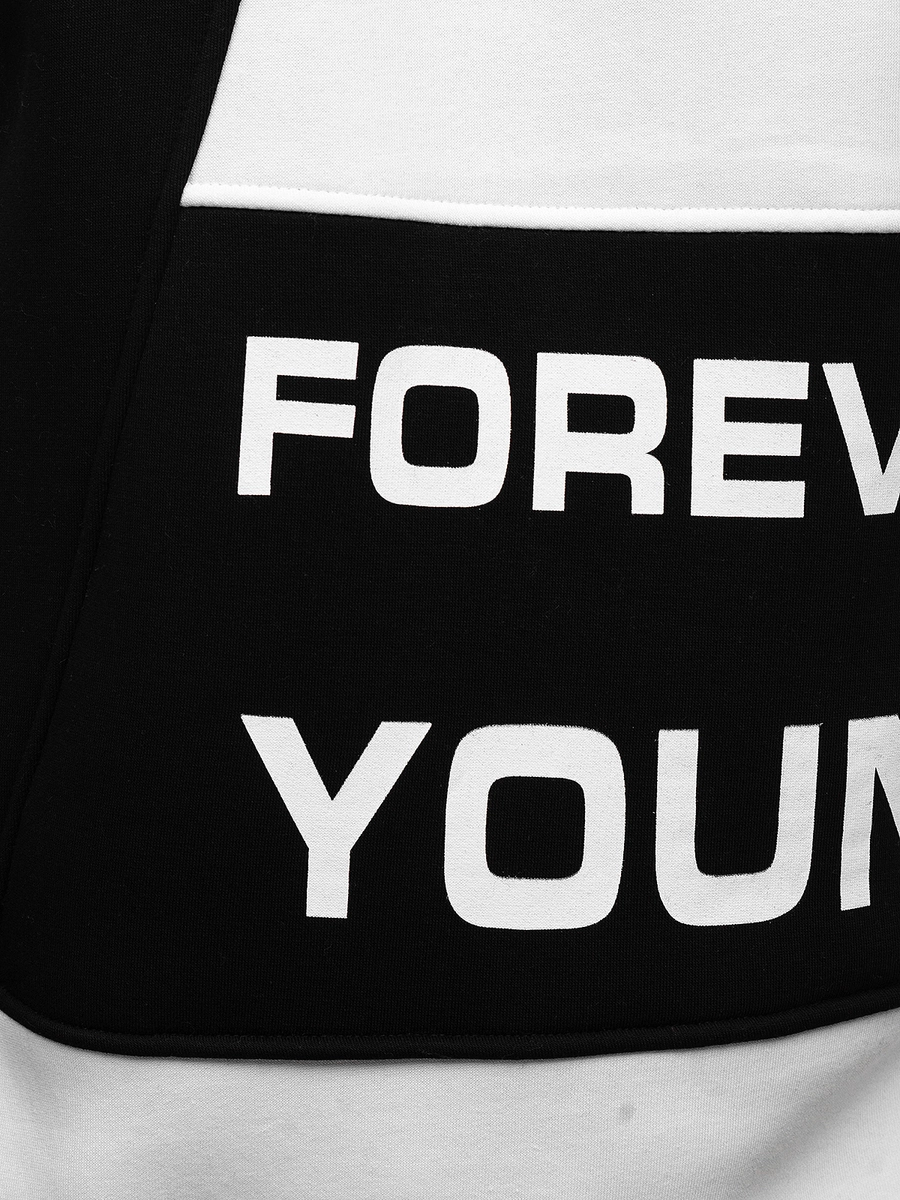 Snygg svart/vit herrhuvtröja med tryck 0003 från Bolfs kollektion. Den svartvita tröjan är universell och passar alla manliga smaker. Den har ett designertryck på framsidan som gör att du sticker ut från mängden. Den har en elastisk mudd på ärmarna och nertill. Den är menad till de som gillar en sportig stil. Perfekt för promenader, jogging, träning på gymmet eller gå ut med vänner. Tröjan är gjord av 73% bomull och 27% polyester. Passar perfekt med jeans eller joggers.