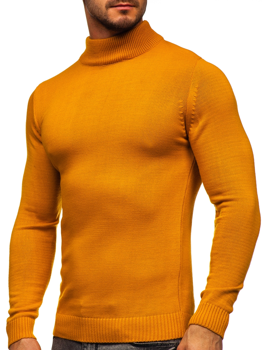 Iögonfallande kamel herr tröja 4600 från Bolf kollektionen. Produkten sätts på över huvudet. Passar perfekt till figuren tack vare dess flexibilitet. Produktens botten och ärmar är försedda med bekväma kanter. På grund av sin mångsidighet bör tröjan med turtleneck finnas i varje herrgarderob. Produkten är avsedd för fans av vardagsstyling. Det kommer att vara perfekt för en promenad, möte med vänner eller en tur till stan. Tröjan är gjord av 100% akryl, tack vare vilken den är flexibel och passar vilken figur som helst. Bär den gärna med en cargobyxa, chinos eller med jeans.