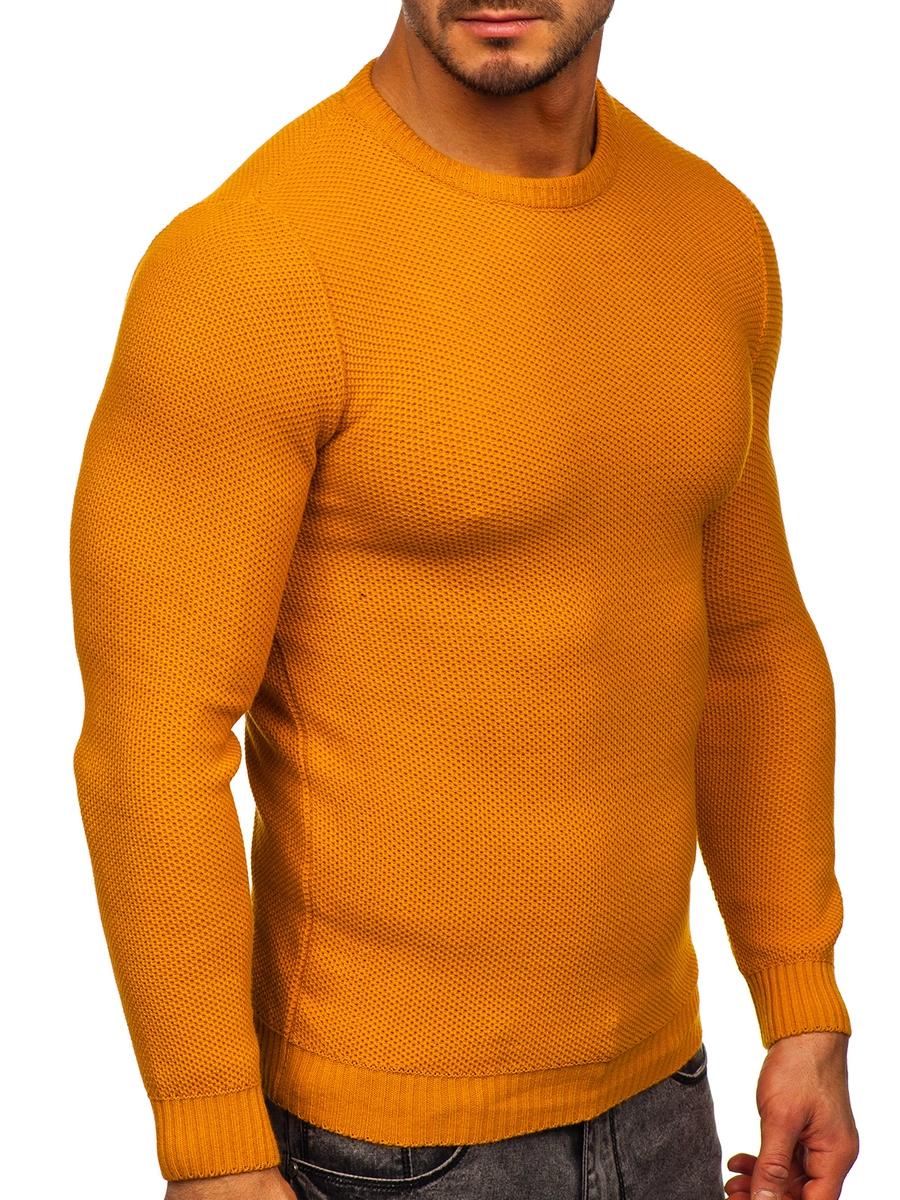 Uttrycksfull kamel herrtröja 4629 från Bolfs kollektion. En tröja med klassiskt snitt är ett måste i varje herrgarderob. Den läggs över huvudet och har en rund halsringning. Nederdelen, halsen och ärmarna är avslutade med kanter. Tröjan kommer att passa perfekt till vilken figur som helst. Den är menad till en vardaglig stil. Det kommer att få dig att se bra ut när du går, träffar vänner eller går ut på stan. Den är gjord av 70% akryl och 30% ull. Skapa en perfekt match med jeans och joggingbyxor.