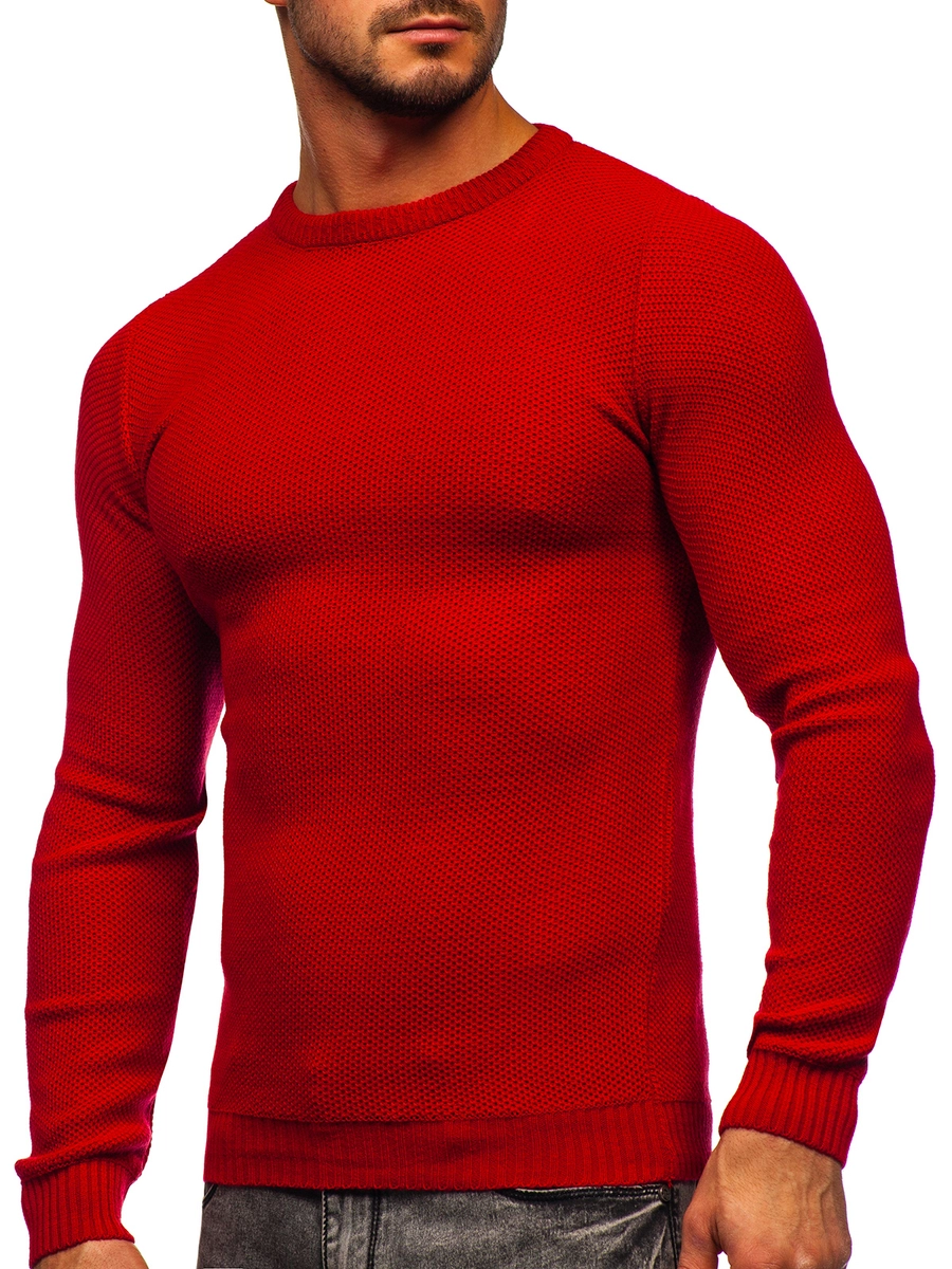 Uttrycksfull röd herrtröja 4629 från Bolfs kollektion. En tröja med klassiskt snitt är ett måste i varje herrgarderob. Den läggs över huvudet och har en rund halsringning. Nederdelen, halsen och ärmarna är avslutade med kanter. Tröjan kommer att passa perfekt till vilken figur som helst. Den är menad till en vardaglig stil. Det kommer att få dig att se bra ut när du går, träffar vänner eller går ut på stan. Den är gjord av 70% akryl och 30% ull. Skapa en perfekt match med jeans och joggingbyxor.