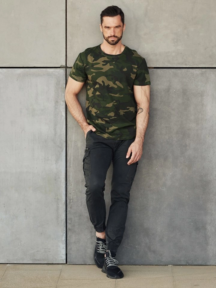 Camo/kaki herr T-shirt i militärstil från Bolf kollektionen. Den är luftig, är rundad nertill och har crewneck-ringning. Perfekta alternativet under sommarens varma dagar. Använd tillsammans med jeans eller shorts.