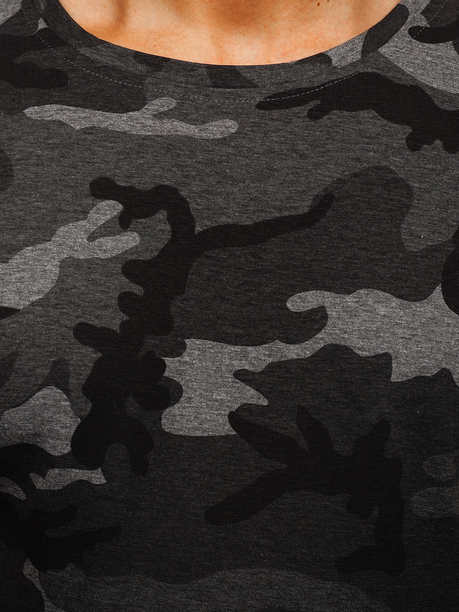 Snygg grafitgrå herr T-shirt med militärtryck S808 från Bolf kollektionen. Den här T-shirten har ett modernt camomönster och en praktisk rund halsringning. T-shirtens stil är hombre. Den består av 65% bomull och 35% polyester, vilket gör den stretchig och passar figuren perfekt. Den har sömmar i perfekt matchande färg på ärmar och nertill. Den passar perfekt till vardags, en modern look gör att sticker ut från mängden. Hombremotivet för den väldigt intressant och ger T-shirten karaktär. Den passar perfekt för en sväng på stan eller en joggingtur. Den är bekväm och lös i passformen och passar bra till många olika tillfällen. Karakteristiska färger gör den väldigt iögonfallande. Militärstilen får dig att sticka ut från mängden. Den passar perfekt för vardagliga tillfällen, som en sväng på stan eller en joggingtur. Det flexibla materialet gör att den är bekväm på löpturen eller vid andra fysiska aktiviteter. T-shirten finns i flera färger. Du kan välja färg som passar din stil, en som sticker ut eller en lite mer diskret. En T-shirt måste finnas i varje garderob, denna är originell och adderar karaktär. Passar jättebra med jeans eller ett par joggers. De passar också bra med cargobyxor vilka kompletterar militärstilen. Matcha den med ett par sweatpants. Ett stort urval av färger och storlekar gör att denna T-shirt är ett måste för alla som inte är rädda för att experimentera med mode och stilar. Tack vare att den är så prisvärd är det den perfekta födelsedagspresenten eller julklappen. Denna produkt kommer addera färg och unikhet till din garderob.