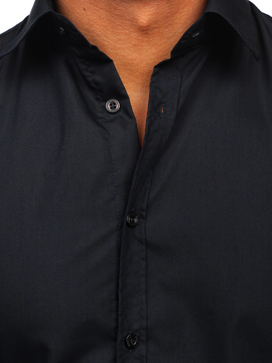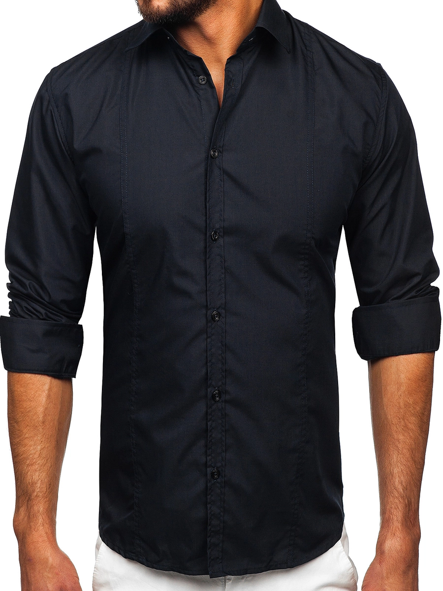 Enkel skjorta i grafit med smal passform för män med en klassisk krage från Bolf-kollektionen. Du kan matcha den med en skjorta och en slips såväl som i lediga outfits. Den presenterade modellen är också utrustad med en neutral färg och understryker axlarna. Det är ett måste.