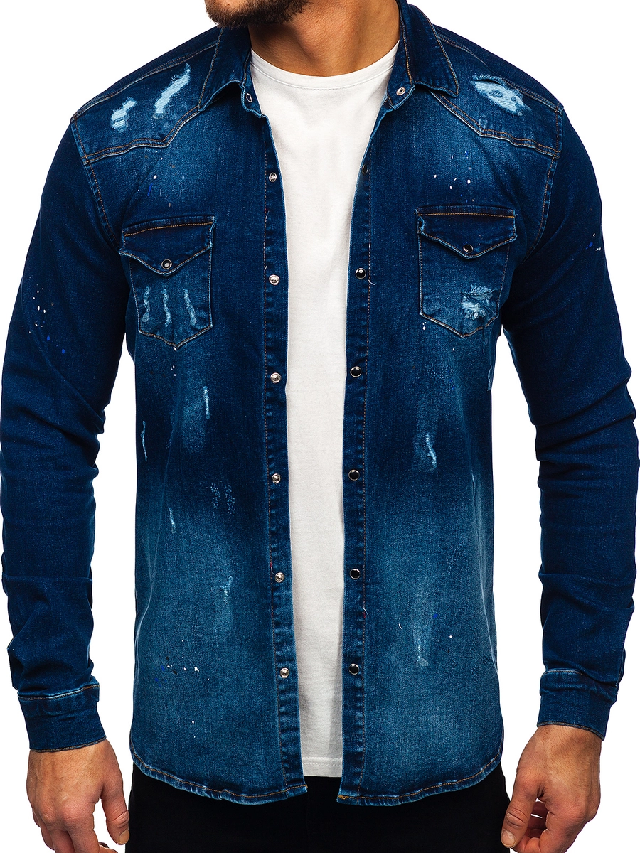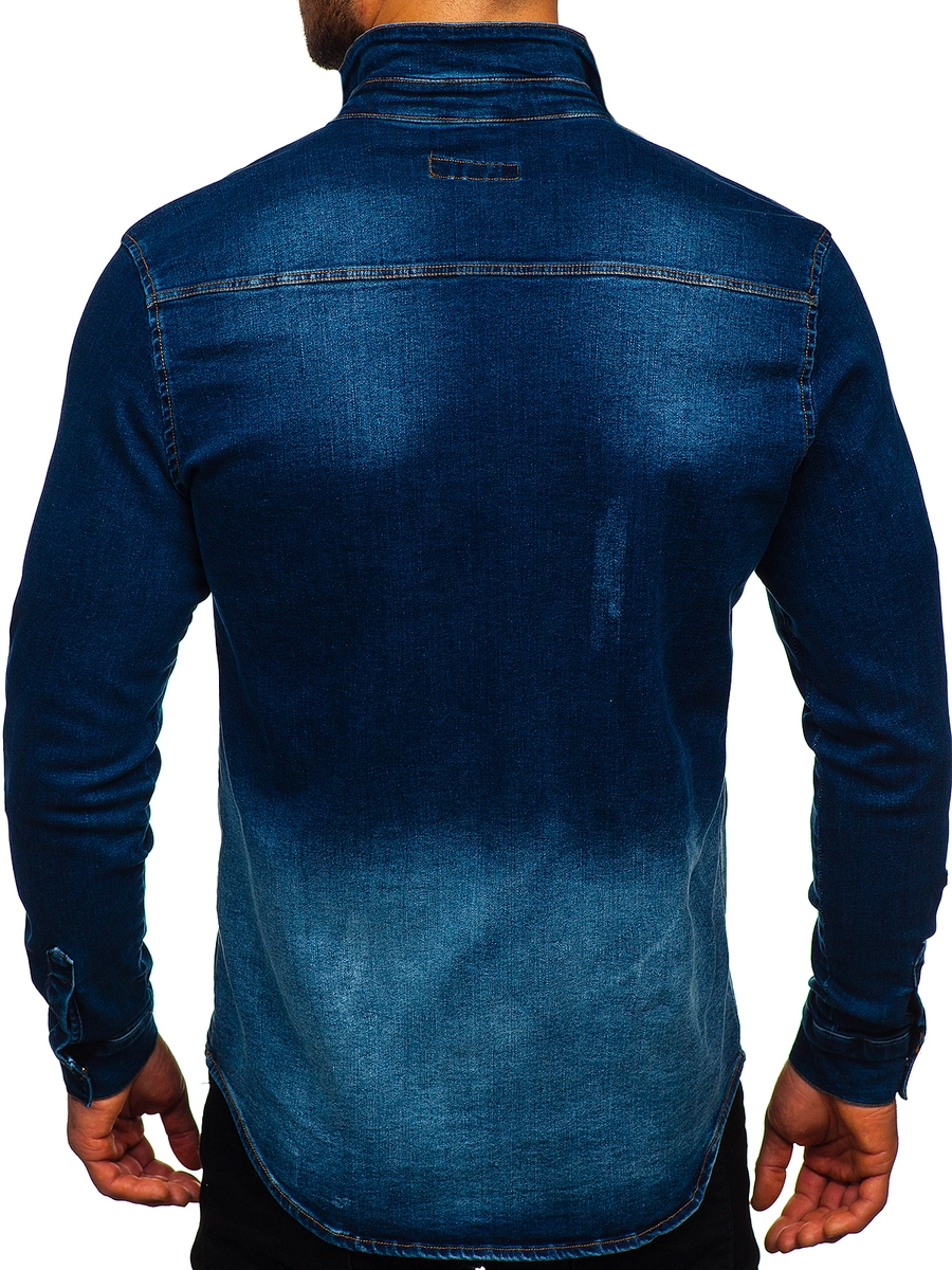 Feedback från kunder Herr Långärmad Jeansskjorta Marinblå Bolf R802