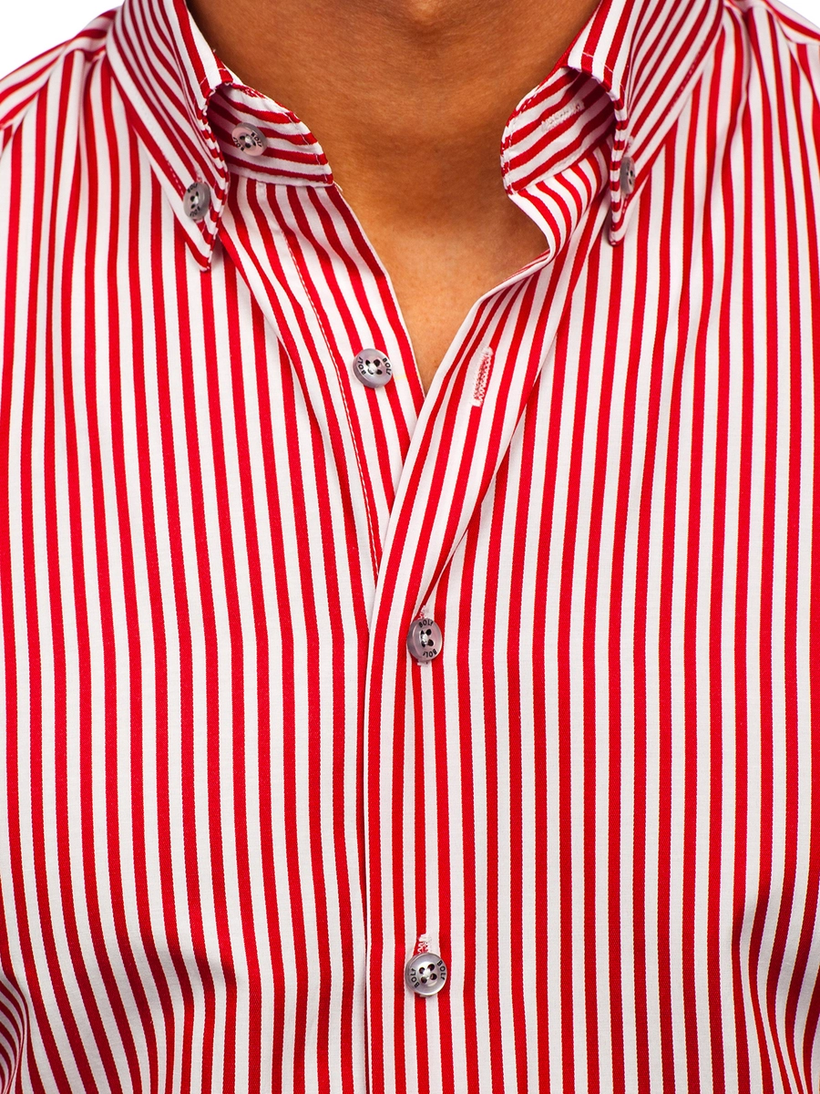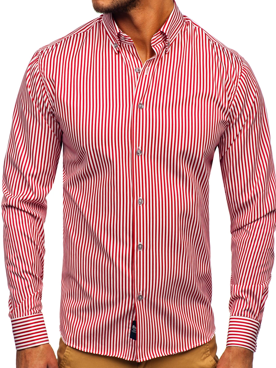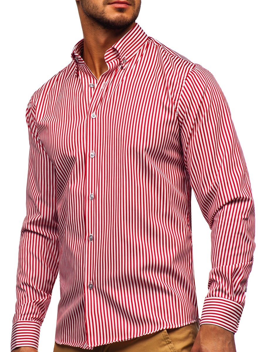 Feedback från kunder Herr Randig Långärmad Skjorta Röd Bolf 20726