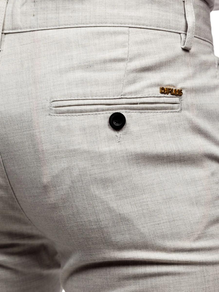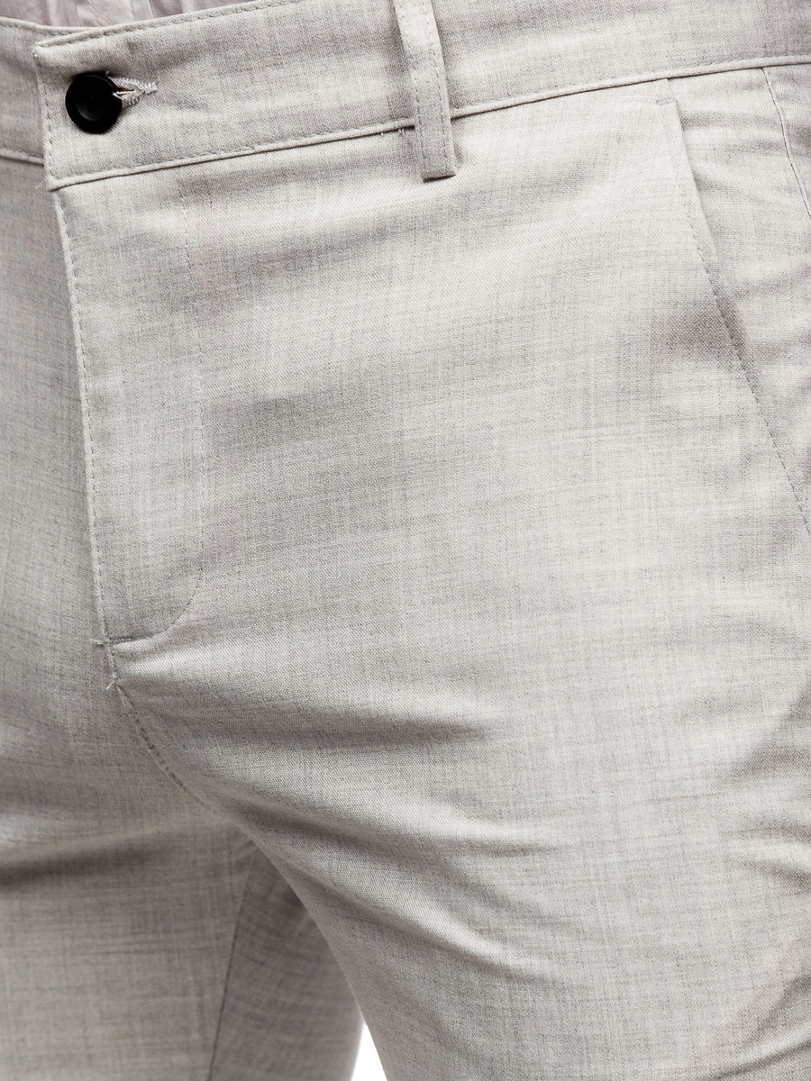 Snygga beige herr chinobyxor 0015 i bomull från Bolfs kollektion. Enfärgade byxor som är klassiska och tidlösa. De har dragkedja och en knapp. Två fickor fram och två bak ger plagget en praktisk karaktär. Chinos passar bra både till vardags och till lite elegantare stilar. De är tillverkade av 100 % bomull vilket gör dem mjuka och behagliga. Skapa en perfekt outfit tillsammans med en kavaj och en skjorta.