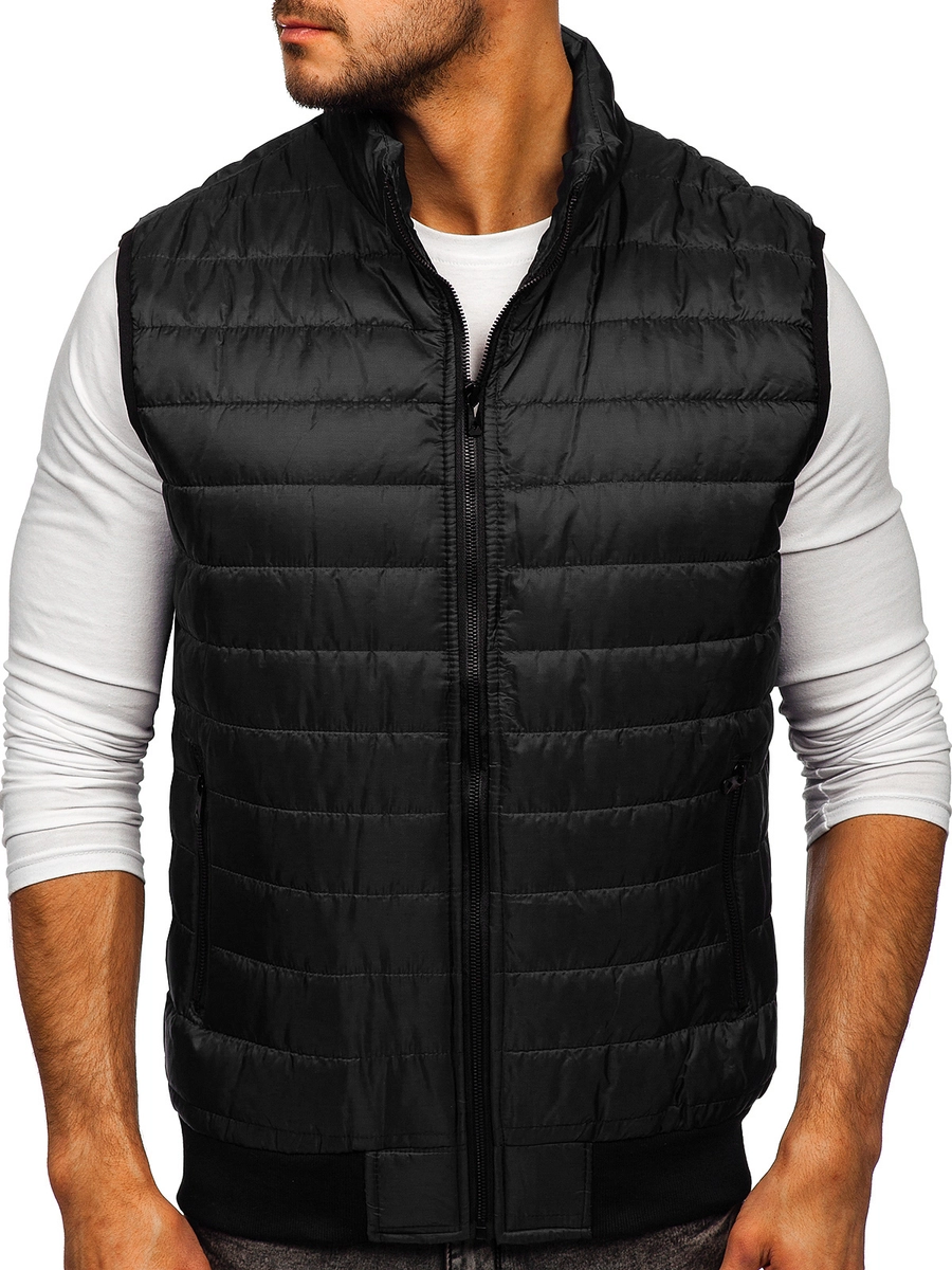 Fantastisk svart quiltad gilet för män MY77 från Bolf-kollektionen. Den finns i sju färger, så du har många alternativ för att välja rätt färg för dig. Quiltad väst, knäpps med dragkedja. Tack vare ståkragen kan du skydda dig mot vind och kyla. Västen har två praktiska utvändiga fickor med dragkedja, där du enkelt och säkert kan förvara din telefon, plånbok och dokument. Västens botten är avslutad med en bred, svart mudd som gör att västens form anpassar sig efter din figur. Tillägnad bland annat människor som gillar att tillbringa tid aktivt utomhus - du kan använda den när du joggar eller går. Genom att kombinera västen med en långärmad top och jeans, skapar du en casual outfit för dagen inne i stan eller när du ska ut med vännerna. Den kommer också att vara perfekt i kombination med en tröja med dragkedja, joggingbyxor eller stridsbyxor. Glöm inte att välja en intressant T-shirt som kommer att framhäva din stils karaktär.
