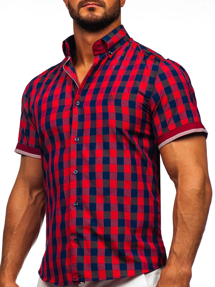 Feedback från kunder Herr Kortärmad Rutig Skjorta Vinröd Bolf 4508