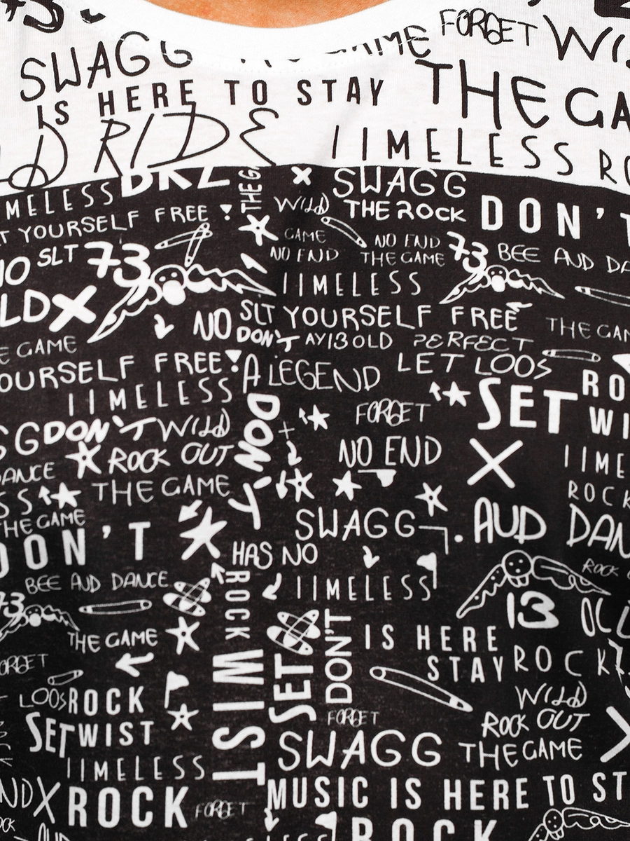 Snygg vit T-shirt med tryck från Bolf kollektionen. Den är riktigt välpassad och har tryckta taggar på framsidan. Kan gärna användas tillsammans med ett par sweatpants eller jeans. Bär den under en sweatshirt, en lätt jacka eller en quiltad gilet.