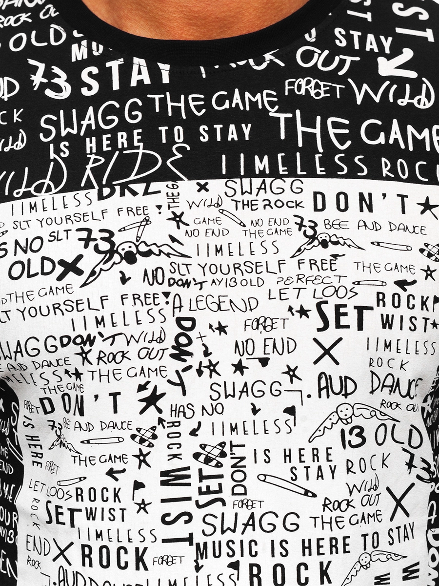Imponerande svart tryckt T-shirt från Bolf-kollektionen Den är riktigt välpassad och har tryckta taggar på framsidan. Kan gärna användas tillsammans med ett par sweatpants eller jeans. Bär den under en sweatshirt, en lätt jacka eller en quiltad gilet.