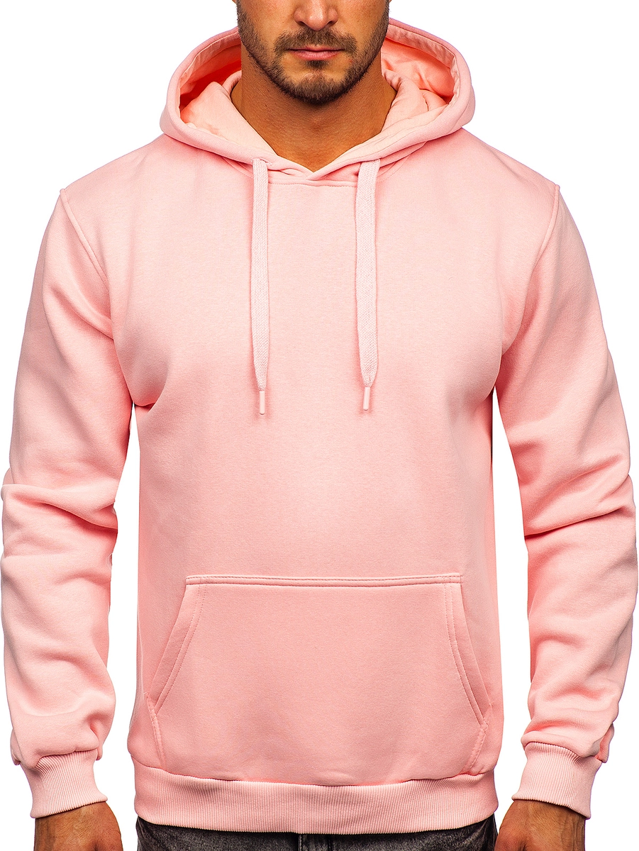 Fantastisk ljusrosa luvtröja för män 1004 från Bolf-kollektionen. Den har justerbar huva och en praktisk känguruficka framtill. Sportig look. Det finns en dragsko justerbar midja och botten. Den är tillverkad i ett mjukt skönt material i en enhetlig färg. Den här modellen kännetecknas av alla färger, den finns i mer än tjugo färgvarianter. Tack vare det är den lätt att matcha till många olika outfits. Passar bra hela året runt. Till många olika tillfällen. Shopping? Avslappning? Till och med för en spontan date passar den bra. Det här plagget passar varje dag, därför är den ett måste ha i varje mans garderob. Snygga färgglada färger. Den passar bra med jeans, cargobyxor eller joggers. Använd med ett par sweatpants eller en lättviktsjacka. Passar perfekt till träningspasset. Den här modellen väljs ofta av våra kunder. Kolla vad denna modell har fått för recensioner av influensers. Den lockar med bra utförande och ett bra pris jämfört med konkurrenterna. Denna sweatshirt har även sin motsvarighet bland dammodellerna, där den också slår rekord i populäritet.
