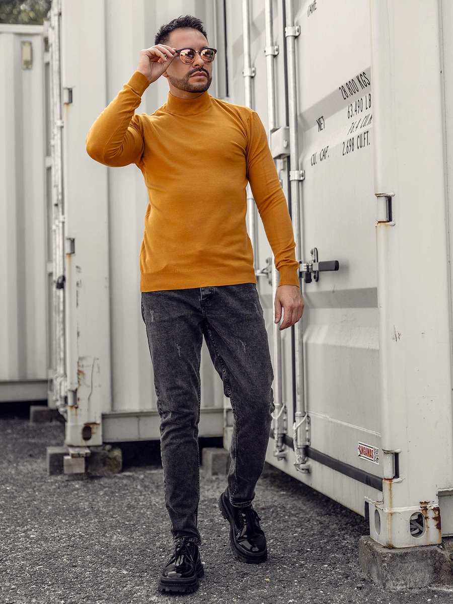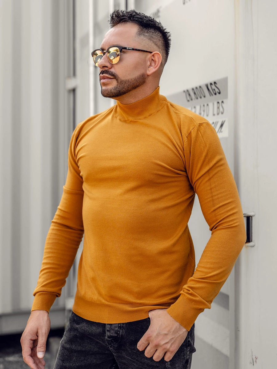 Snygg kamelfärgad basic herr halvpolotröja YY05 från Bolf kollektionen. Basic, enkel tröja som passar perfekt till klassiska stilar. Den är tillverkad av 55% Viskos, 35% akryl och 10% elastan vilket gör den praktisk och användbar varje dag och till alla kroppsformer. Den har en rund halslinje med polokrage. Den finns i många olika färger vilket gör att den lätt matchas med olika kläder. En polotröja är en perfekt bas för en snygg outfit. Passar många olika stilar. Passar utmärkt med jeans, joggers eller i en elegant stil tillsammans med chinos och en kavaj.