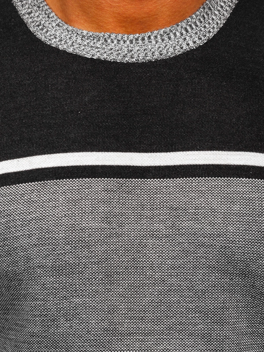 Klassisk grafitgrå herrtröja 6300 från Bolfs kollektion. Den har en fin, rundad halslinje med ribbning. Ribbningen finns också nertill och på ärmarna vilket förstärker den lediga looken. Tack vare detta passar den de flesta kroppsformer. Tack vare dess passform får alla ett väldigt fördelaktigt utseende i den. Snygga ränder ger den karaktär. Den är tillverkad av ett väldigt fint och mjukt material som anpassar sig fint efter kroppen. Materialet är 65% ull, 30% akryl och 5% elastan. Använd den till skolan, arbetet, på promenaden eller en date - den passar oavsett tillfälle och du kommer alltid se snygg ut. En klassisk tröja som passar perfekt till jeans och en skinnjacka, den skapar den perfekta outfiten. Du kan ha den till ett par joggers och en sweatshirt för en ledigare stil.