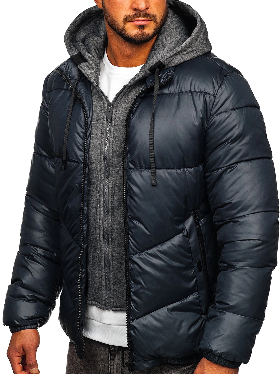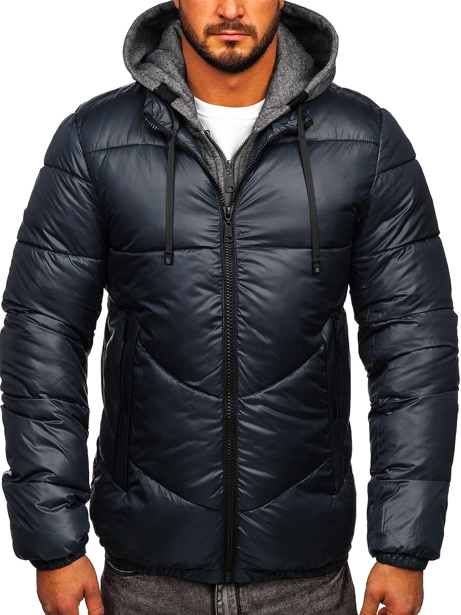 Snygg grafitgrå quiltad herrvinterjacka B2906 från Bolfs kollektion. Den har dragkedjestängning. Nertill och vid ärmsluten finns en mudd vilket gör att den skyddar bra mot kyla och anpassar sig bra efter kroppsformen. Den har en ståkrage och en avtagbar huva, tack vare dessa skyddar den dig bra mot vind och kyla. Det enkla snittet och passformen gör att alla får ett väldigt fördelaktigt utseende i den. Jackan har tre praktiska fickor. Två utvändiga fickor med dragkedjor och en invändig ficka. Jackan är tillverkad av material av hög kvalitet, vilket gör den väldigt mjuk och bekväm. Den är tillverkad av 100% nylon. Tack vare dess mångsidighet kan den lätt matchas med många olika stilar. Perfekt för en promenad, en träff med kompisarna eller för en shoppingtur. Jackan passar perfekt till ett par chinos och en långärmad top.