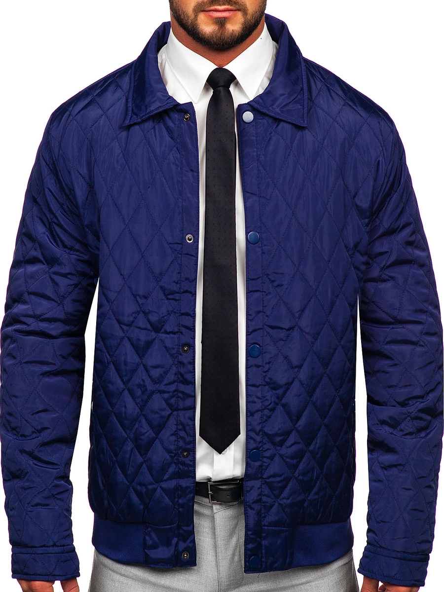Klassisk marinblå quiltad herrlättviktsjacka M13081 från Bolfs kollektion. Nertill finns en mudd vilket gör att den skyddar bra mot kyla och anpassar sig bra efter kroppsformen. Rombquiltning över hela jackan ger den en unik, fin karaktär. Den stängs med tryckknappar och har två ytterfickor, även de med tryckknappar. Den har även en invändig ficka. Jackans mångsidighet gör att den kan användas både till sportiga och vardagliga stilar. Perfekt för vardagligt bruk, som shopping eller till morgonjoggen. En stor fördel med jackan är att den är så lätt och bekväm att använda. Skapa din egen unika stil genom att kombinera jackan med chions och en långärmad top.