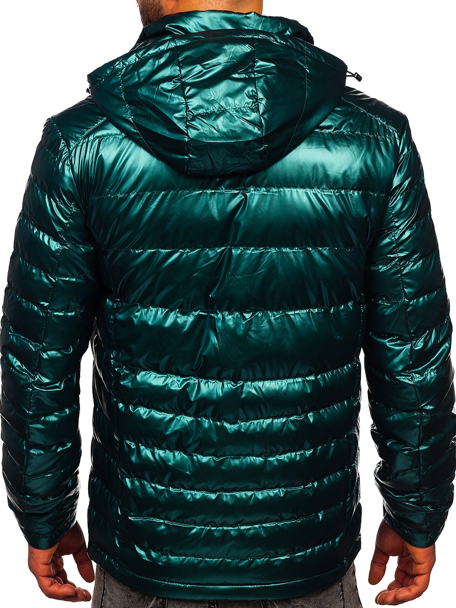 Snygg grön quiltad sportig herrlättviktsjacka 2147 från Bolfs kollektion. En varm jacka som stängs med dragkedja kompletterar garderoben hos alla män. Den här modellen har en ståkrage och huva med snäppe och 2D-justering. Jackan har väldigt praktiska fickor, två sidofickor och en bröstficka med dragkedja. Det finns dessutom två invändiga fickor, den ena stängs med dragkedja och den andra med kardborre. Den är tillverkad av 100% polyester. Tack vare dess mångsidighet kan den lätt matchas med många olika stilar. Den är menad till de som gillar en sportig stil. Passar perfekt till träning, långa höst-/vinterpromenader, på shoppingturen eller på vandringar. Den är det perfekta valet i övergångssäsongen under vår och höst. De dämpade färgerna gör att tröjan passar både till ljusare och mörkare outfits. Du kan även ha den när du träffar dina vänner, vilka kommer bli förtjusta över din snygga stil som kompletteras av den läckra jackan. Passar perfekt med chinos och sweatpants.