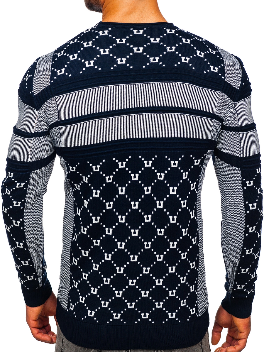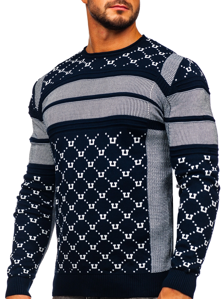 Klassisk marinblå herrtröja 1059 från Bolfs kollektion. Den har en rundad halsringning med ribbning. Ribbningen finns också nertill och på ärmarna vilket ger den en väldigt fin silhuett. Den är tillverkad av ett väldigt fint och mjukt material som anpassar sig fint efter kroppen. Den är tillverkad av 50% ull och 50% akryl. Den finns i tre olika, dämpade färger så att du lätt kan matcha den med olika stilar. Använd den till skolan, arbetet, till bion, på promenaden eller när du ska träffa vännerna. En klassisk tröja som passar perfekt till jeans och en skinnjacka, den skapar den perfekta outfiten när du ska in till stan. Du kan ha den till ett par joggers och en sweatshirt för en ledigare stil.