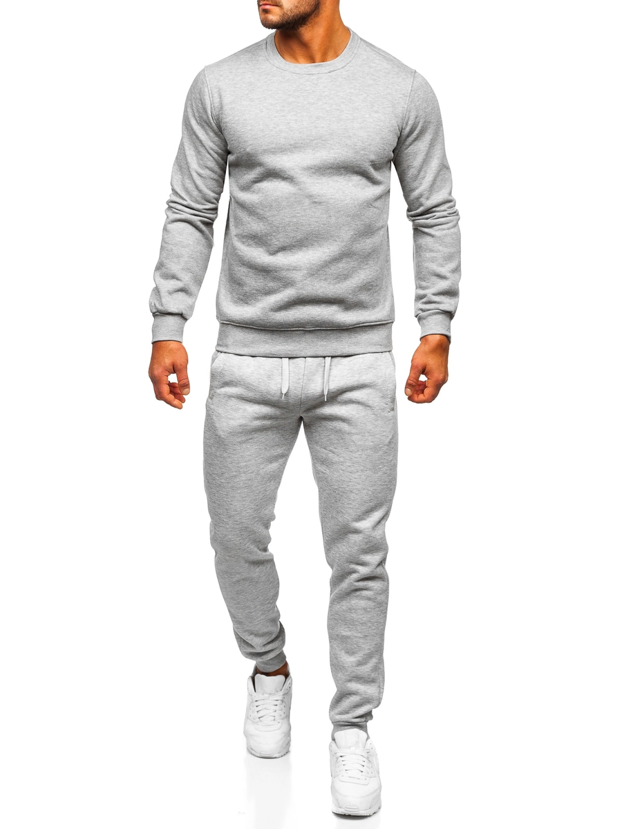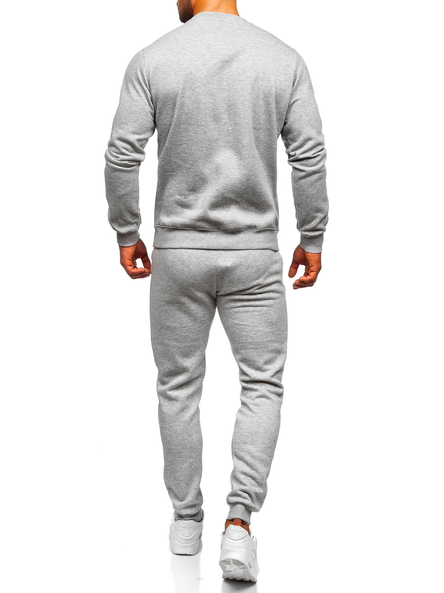 Fantastisk grå sportig herrträningsoverall 10380 från Bolfs kollektion. Setet består av sweatshirt och sweatpants. Byxorna är reglerbara i midjan med bred resår och dragsko och de har två fickor på sidorna. Ett enkelt snitt med bra passform ger dem ett sportigt utseende. Den är tillverkad av mjukt och skönt material för en god bekvämlighet. En träningsoverall kan vara en perfekt bas för en vardalig eller sportig outfit. Både tröjan och byxorna kan kombineras med olika kläder, vilket gör dem väldigt användbara i dina vardagliga outfits. Setet passar perfekt med en T-shirt, en lättviktsjacka eller en sportjacka. Träningsoverallen rekommenderas att användas hemma, på promenaden, på shoppingturen eller när du tränar på gymmet eller ute i naturen.
