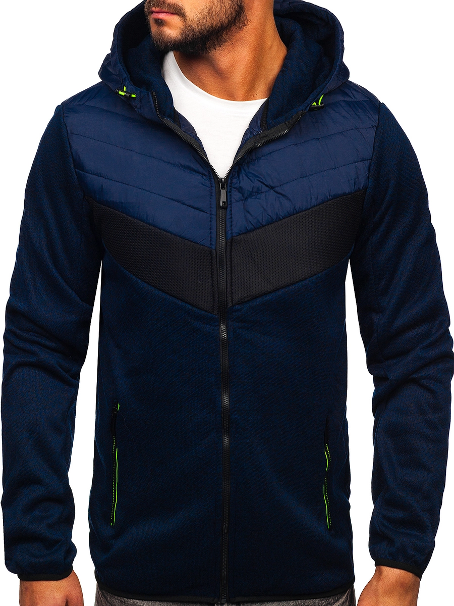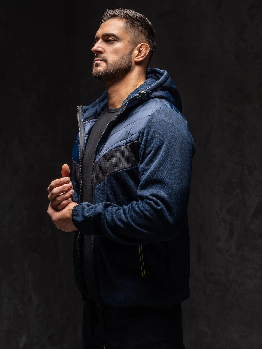 Iögonfallande marinblå herrlättviktsjacka KS2153 från Bolfs kollektion. En jacka i en klassisk färg adderar elegans till en vardaglig styling. Denna jacka stängs med en dragkedja och har en justerbar huva fäst i kragen. Två utvändiga fickor med dragkedjor ger en praktisk karaktär. En elastisk mudd nertill och vid ärmsluten gör att jackan ser snygg och klassisk ut. Den är tillverkad av 100% polyester. Tack vare dess mångsidighet kan den lätt matchas med många olika stilar. Passar perfekt till träning, långa höst-/vinterpromenader eller vandingar. Passar bra ihop med jeans eller joggers och en långärmad top.