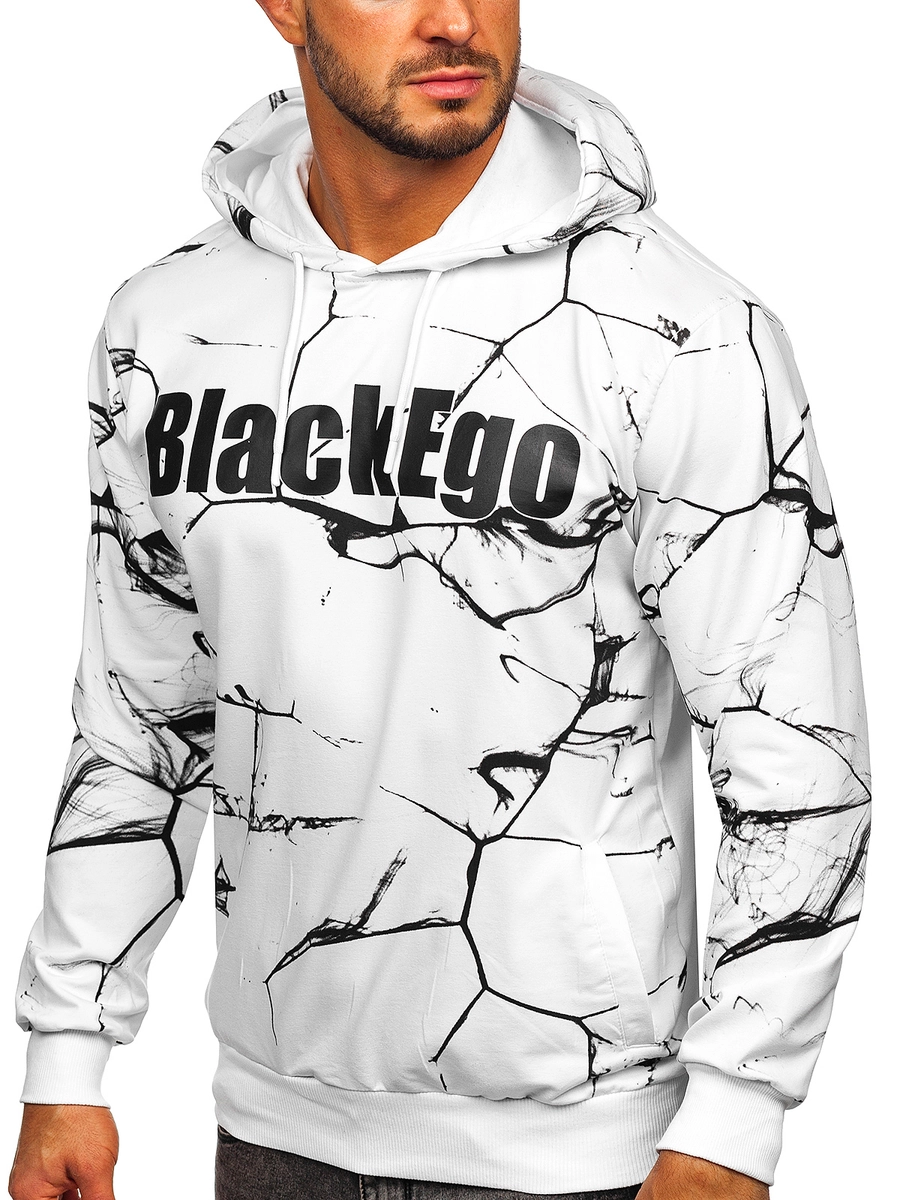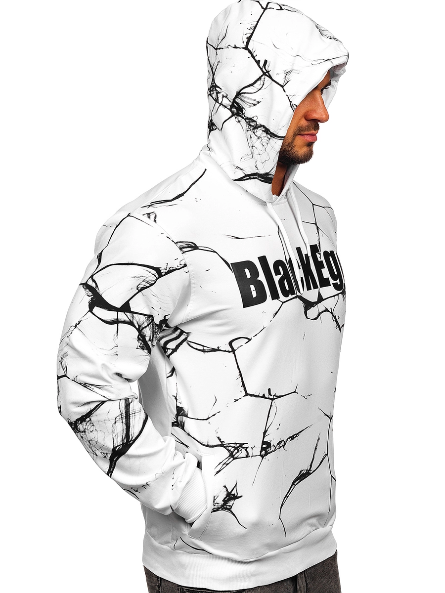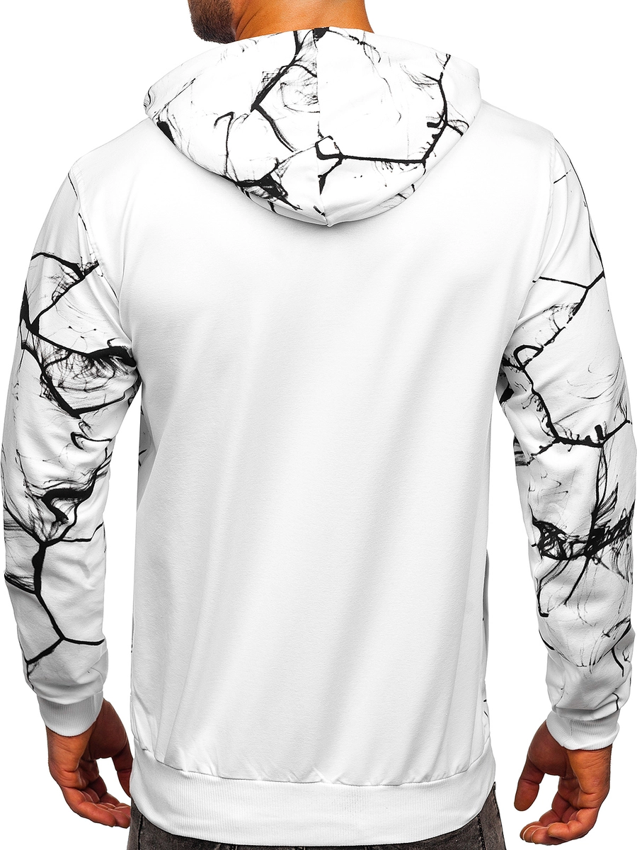 Snygg vit herrhuvtröja med tryck 6453 från Bolfs kollektion. Den här tröjan har ett original tryck över hela tyget vilket gör den unik. Den finns i tre färger. Den har en elastisk mudd på ärmarna och nertill. Den är perfekt till de som har en aktiv livsstil. Du kan använda den på träningen, promenaden eller till andra utomhusaktiviteter. Dena tröja har en justerbar huva i två lager och två sidofickor utan stängning. Tröjans material är ett som gör att du känner dig väldigt bekväm i den. Om du värdesätter bekvämlighet, skapa din sportiga stil ihop med en träningsoverall och en softshelljacka. För en ledigare stil, använd tröjan ihop med jeans eller joggers.