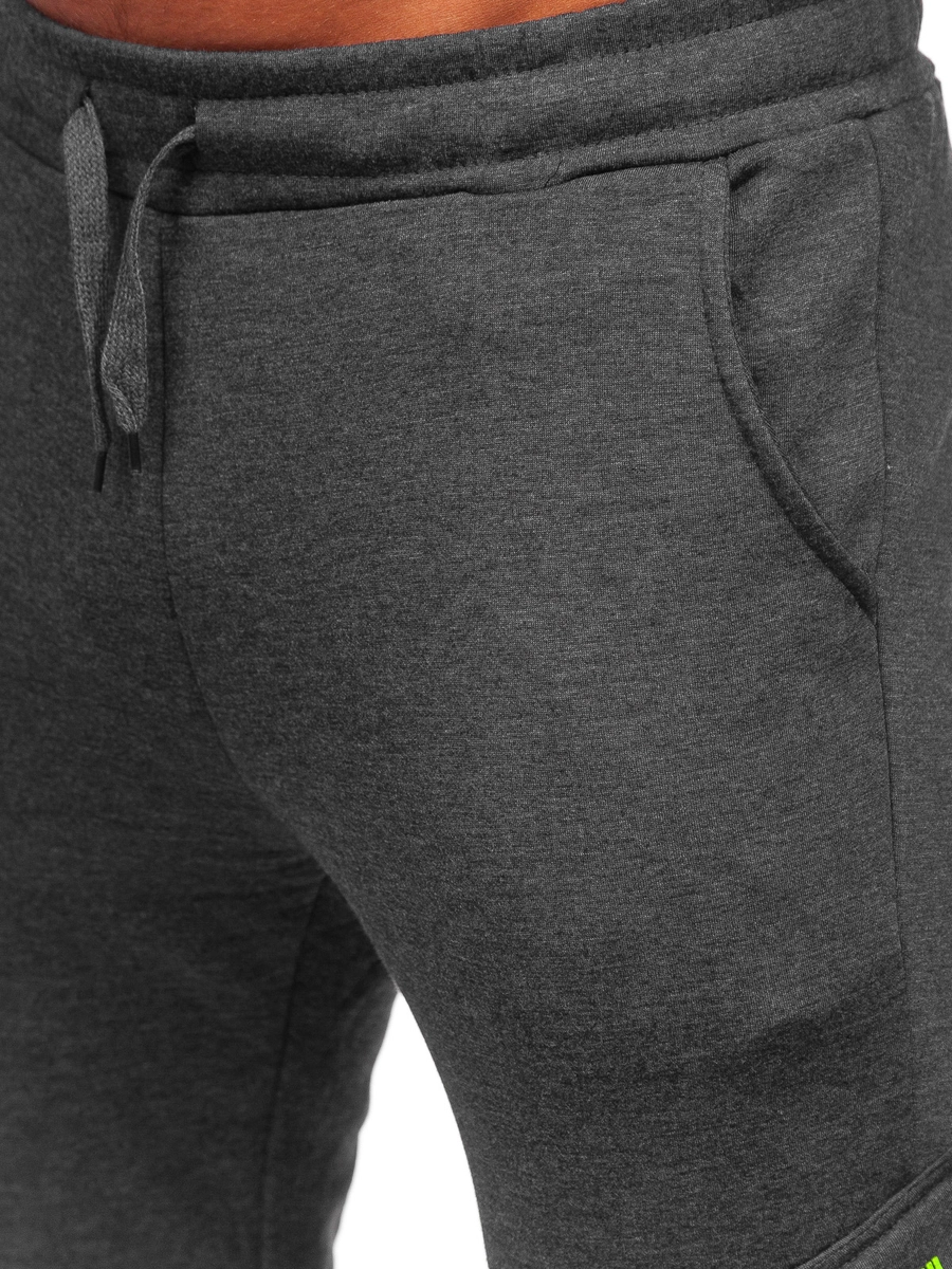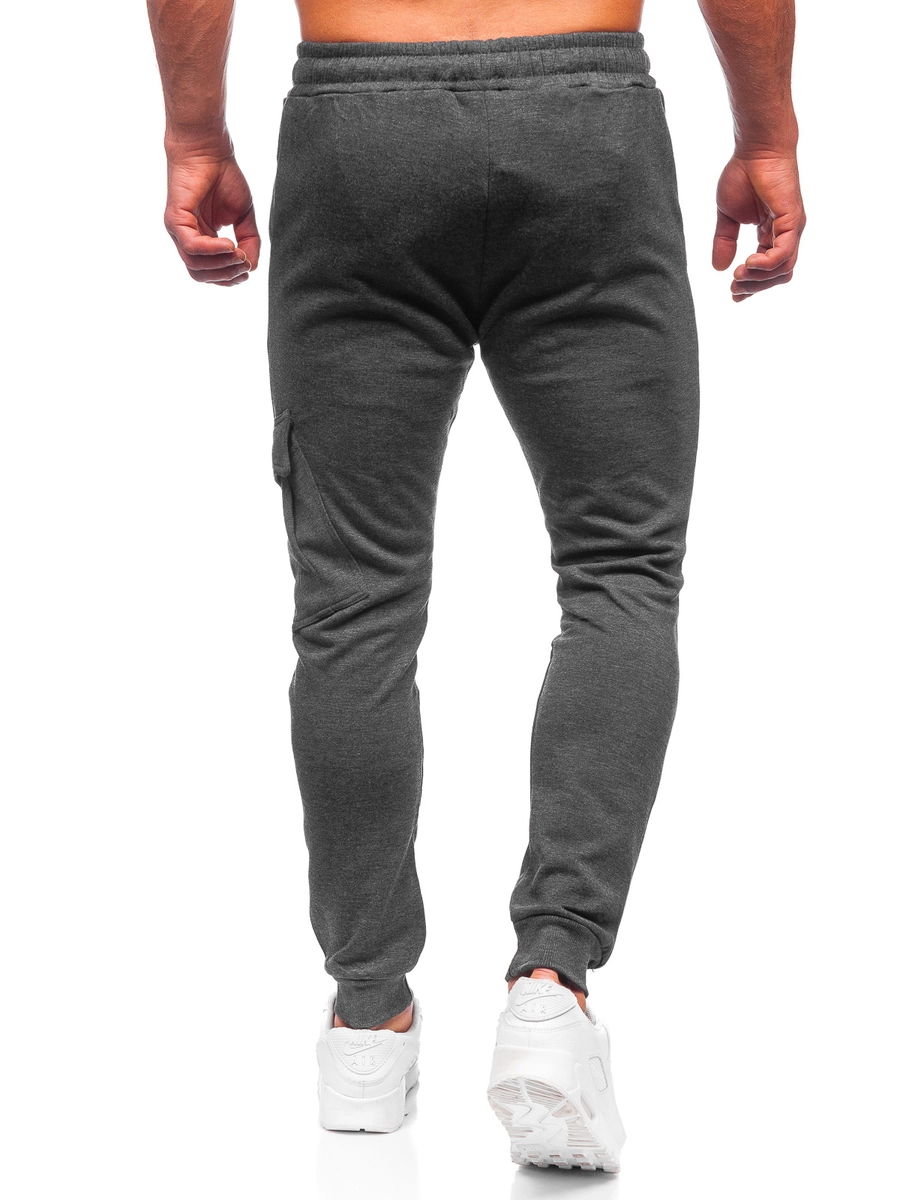 Snygga varma grafitgrå herrcargo-sweatpants HW2173 från Bolfs kollektion. Tack vare fodret invändigt passar de perfekt lite kallare dagar. Den här modellen har praktiska fickor där du kan bära med dig de viktigaste sakerna. Två öppna sidofickor samt en ficka med lock och kardborre som även har ett dekorativt tryck. De regleras i midjan med en kraftig resår och snöre vilket gör att de är väldigt bekväma och sitter perfekt på kroppen. Nertill finns även en mudd som skyddar bra mot vinden. De är tillverkade av 65 % bomull och 35 % polyester, vilket gör dem extremt mjuka och behagliga. Cargobyxor är tidlösa, bekväma, praktiska och ser alltid bra ut. Kombinera dem med en skinnjacka och en T-shirt eller en sweatshirt och en lättviktsjacka för en perfekt stil till nästa alla tillfällen.