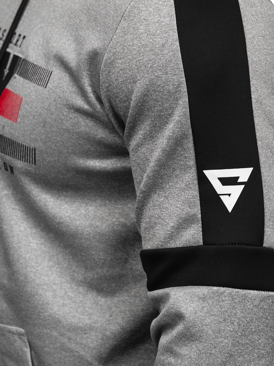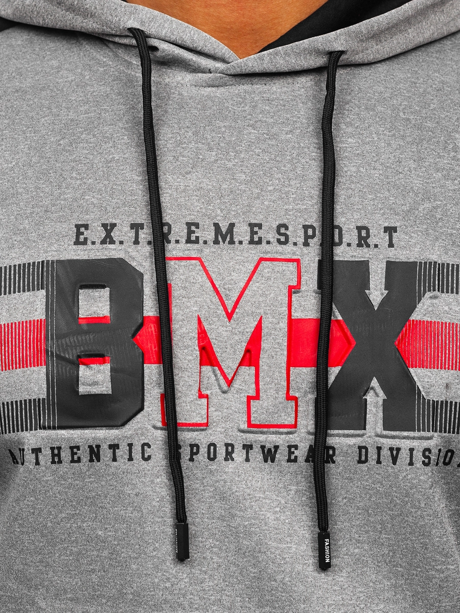 Cool grå herrhuvtröja med tryck HY973 från Bolfs kollektion. Den finns i tre färger. Tack vare designertrycket framtill får den en unik karaktär. Den här modellen har en praktisk känguruficka. Tack vare den reglerbara huvan i dubbla lager skyddar den bra mot kyla och vind. Nertill och på ärmarna finns en ribbning, vilket förstärker den sportiga stilen. Tröjan är tillverkad av ett väldigt mjukt, behagligt och hållbart material. Den är menad till de som gillar en aktiv livsstil. Använd den till löpning, hård träning eller på promenaden. Denna tröja kommer passa i flera olika sammanhang året runt. Använd gärna med jeans. Den passar perfekt med joggers och en bomberjacka.