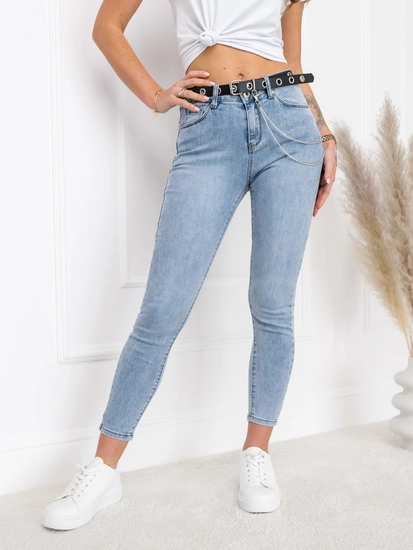 Bekväma blå damjeans regular fit LA691 från Bolfs kollektion. Byxorna har väldigt praktiska fickor, tre fram och två bak. Moderiktig skuggning på benen och ett dekorativt bälte ger dem en unik look. Byxorna är tillverkade av 76% bomull, 22% polyester och 2% elastan. Jeansbyxor är en perfekt bas för en vardaglig outfit. Framhäver den kvinnliga kroppsformen perfekt. Du kan ha dem till skolan, på promenaden eller in till stan med kompisarna. Bär dem tillsammans med en T-shirt, en skinnjacka eller en sweatshirt.