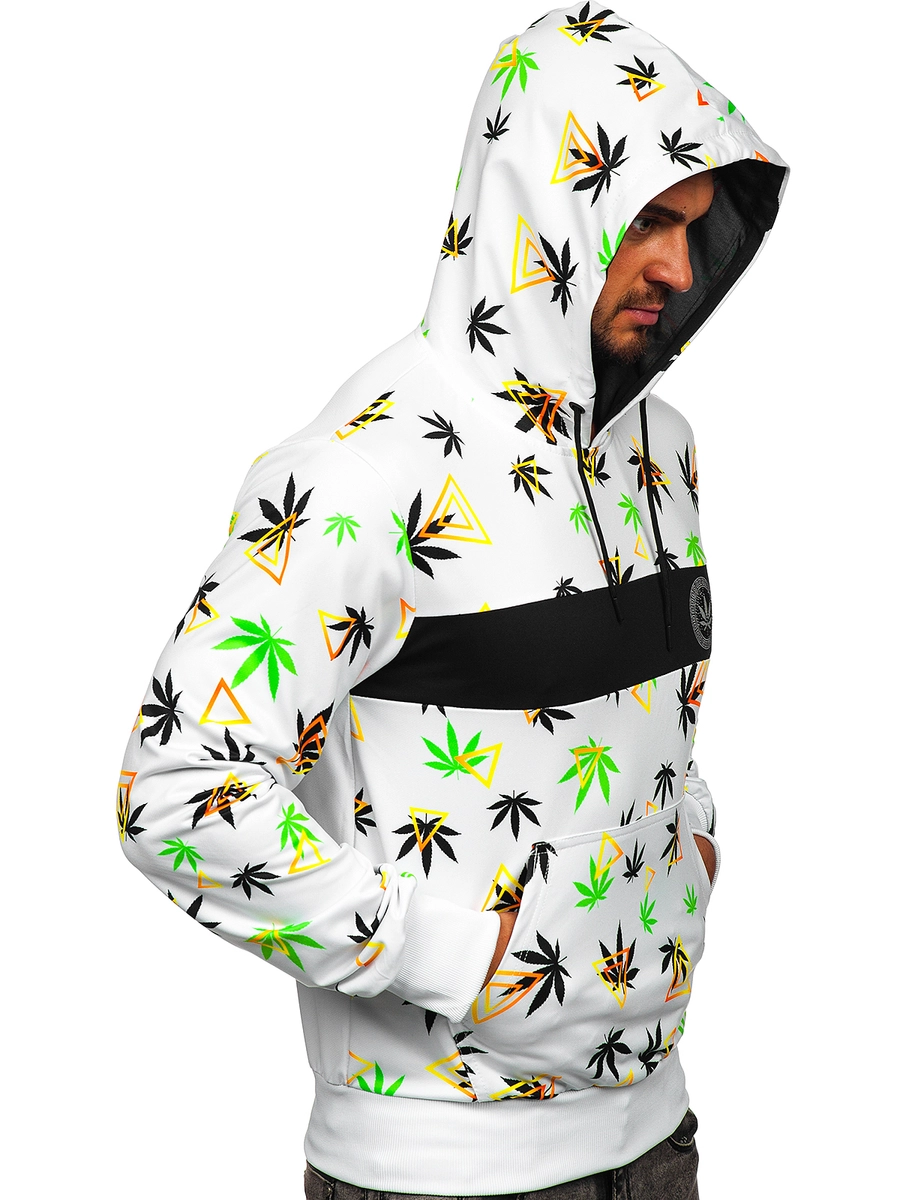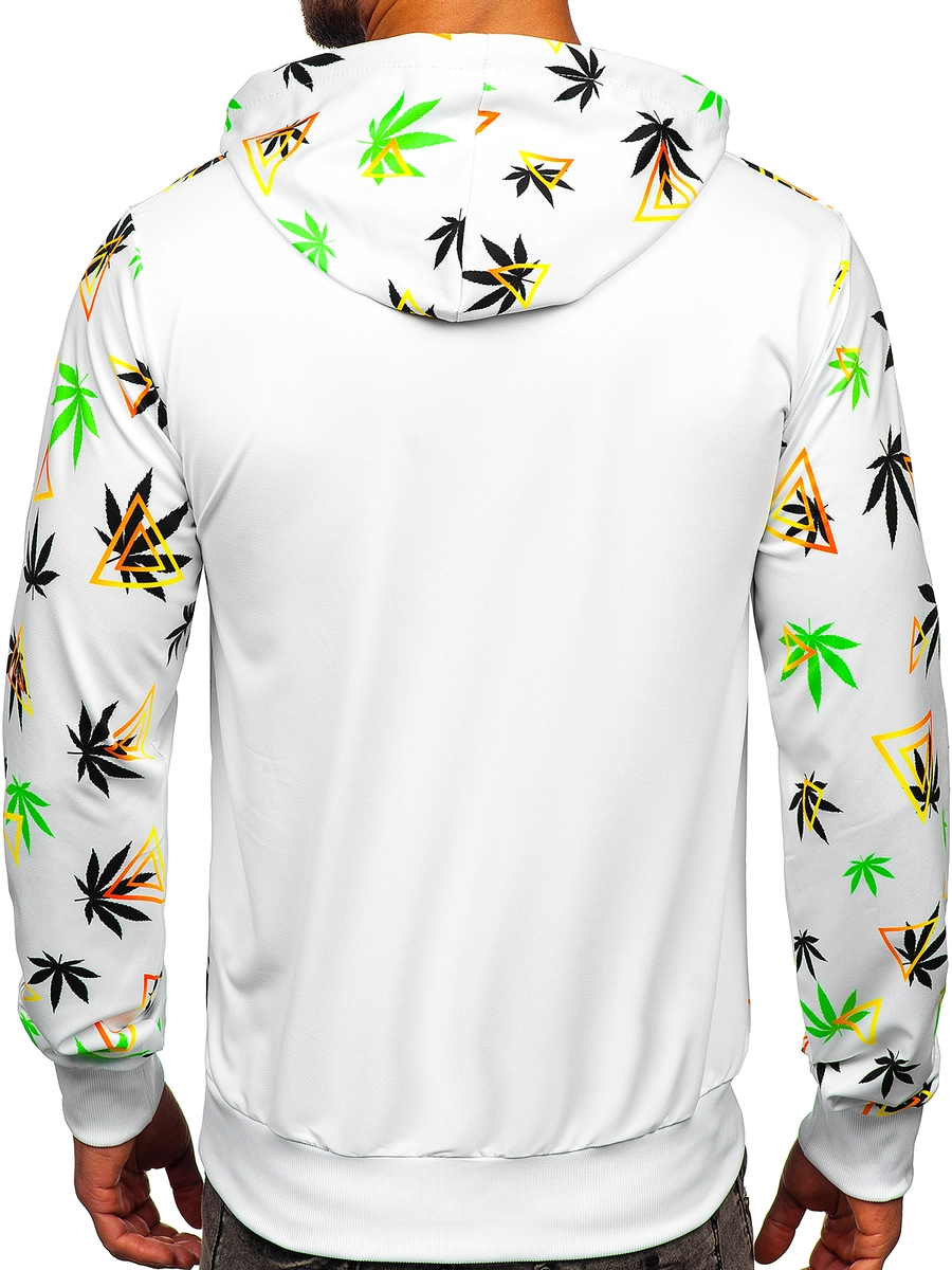 Vit herrhuvtröja med tryck från Bolf HM631 är en perfekt bas för vår eller höstoutfits. Dess praktiska inslag är en huva i dubbla lager och dragsko samt en känguruficka. Denna modell kännetecknas av intressanta, originaltryck på framsidan, tack vare vilka sweatshirten får en distinkt och unik karaktär. Nertill och på tröjans ärmar finns muddar, vilket gör att den anpassar sig perfekt efter kroppen. Tröjan är tillverkad av ett väldigt mjukt, behagligt och hållbart material. Snygga färgglada färger. Tröjan passar bra ihop med jeans eller cargobyxor. Kombinera med en skinnjacka eller en lättviktsjacka!