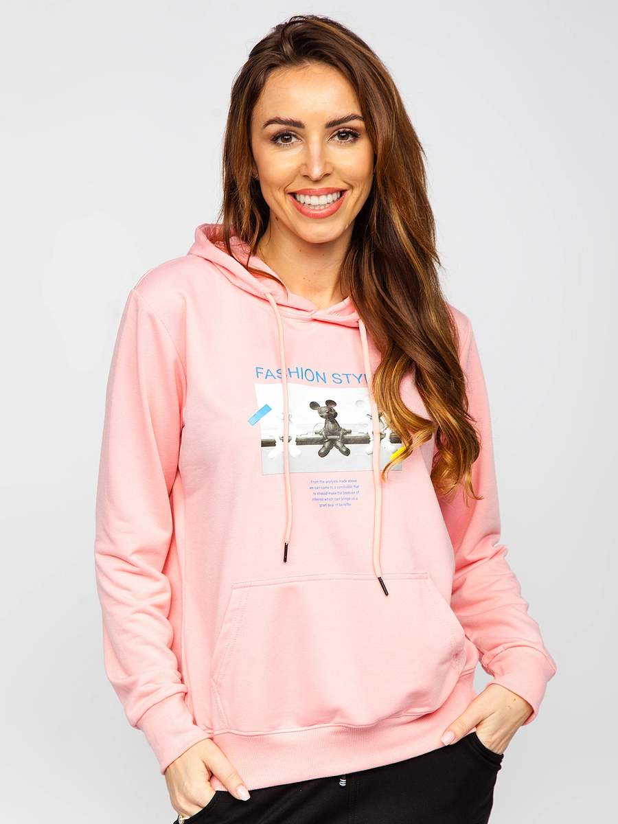 Snygg rosa damhuvtröja med tryck HL9268 från Bolfs kollektion. Den här tröjan har ett original tryck framtill vilket ger den en moderiktig karaktär. Den finns i fyra olika färger, vilket ger dig möjligheten att skapa din egen drömstil. Den har en elastisk mudd på ärmarna och nertill. Den är menad till de som gillar en aktiv livsstil. Du kan använda den på träningen, promenaden eller till andra utomhusaktiviteter. Tröjans material är ett som gör att du känner dig väldigt bekväm i den. Kombinera denna sweatshirt med skinnbyxor och släng en skinnjacka överför den perfekta outfiten när du träffar dina vänner.