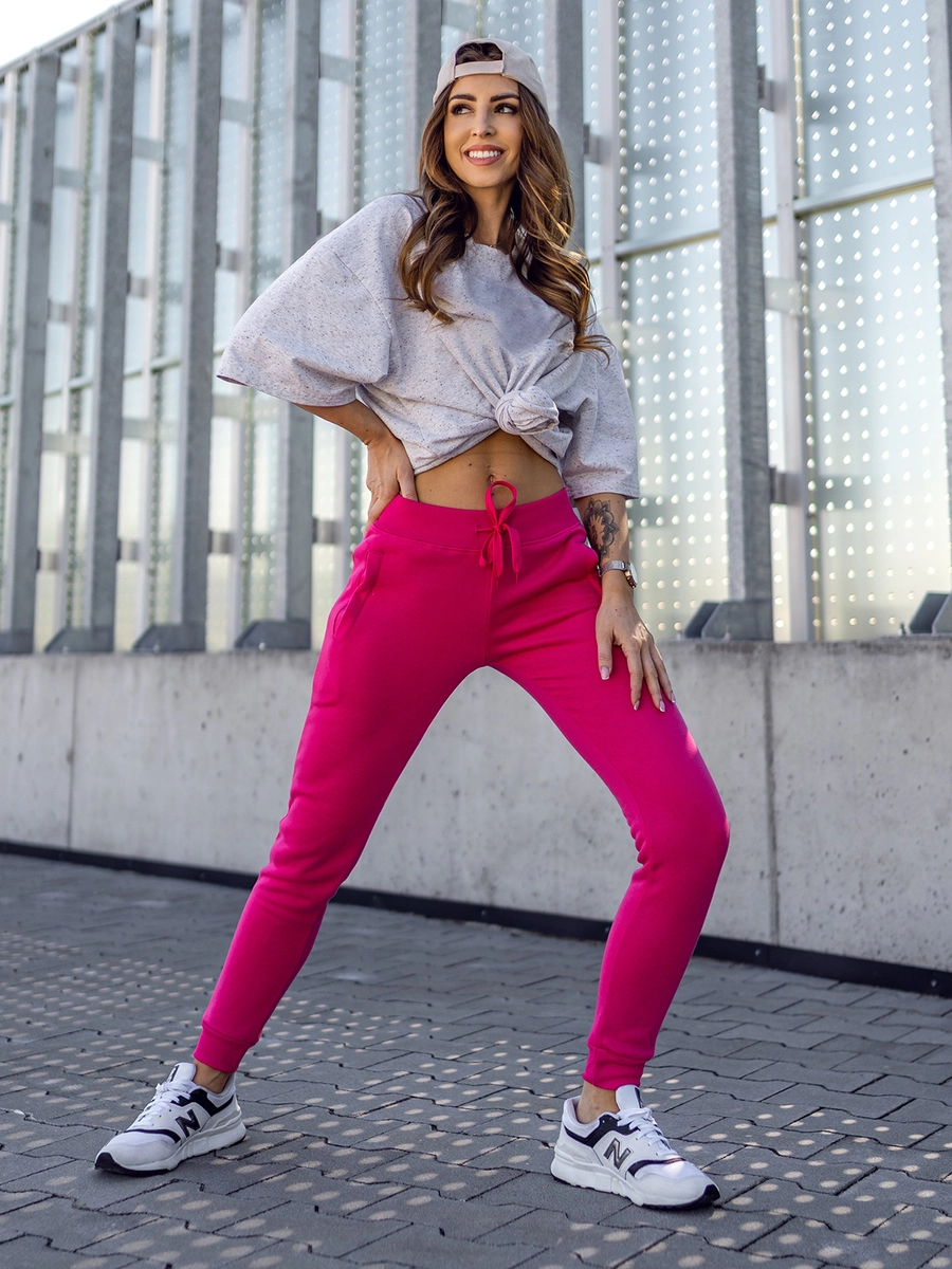 Klassiska rosa dam slim fit sweatpants CK-01 från Bolfs kollektion. Den här modellen finns i flera olika färger. Kan justeras i midjan och har två sidofickor.. Den sportiga looken tillhandahålls av den raka designen och de ribbade benen.. Den är tillverkad av ett mjukt och skönt material. Passar bra till vardags eller sportigare stilar. Använd gärna med en sweatshirt med dragkedja, en T-shirt, en lättviktsjackaeller en softshelljacka. Passar perfekt för ett sportigare utseende. Passar många olika stilar.