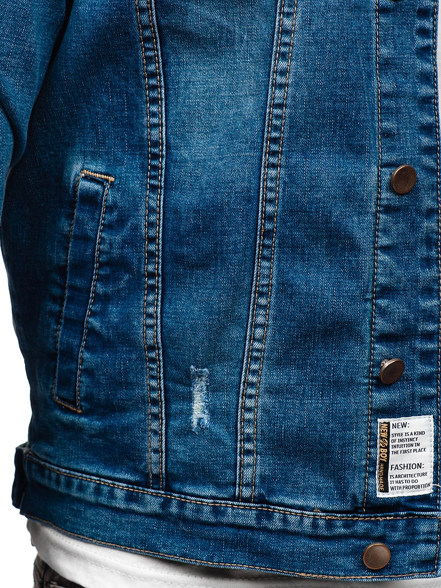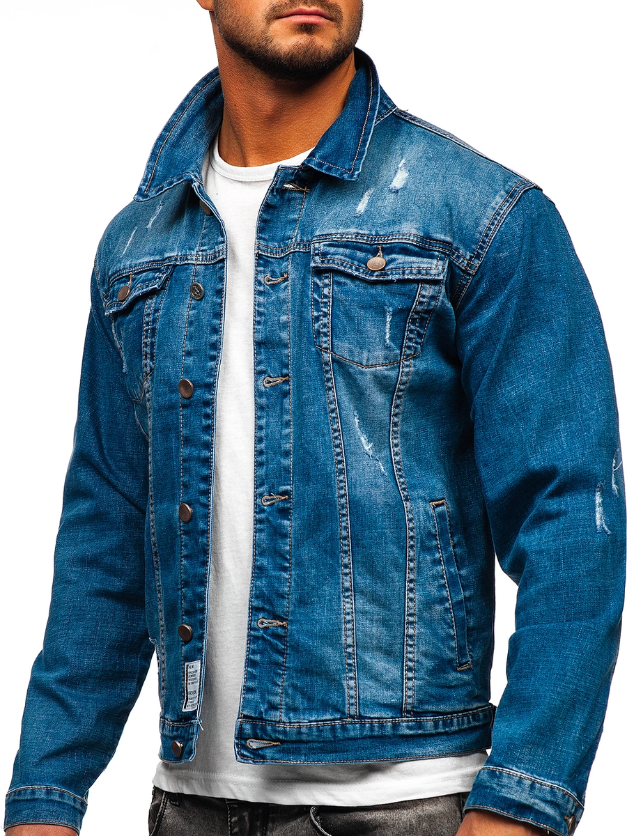 Klassisk blå herrjeansjacka MJ500B från Bolfs kollektion. Den här modellen finns i tre moderiktiga och användbara färger. Jackan och ärmarna har knappar. Den har fyra praktiska fickor, två bröstfickor med knapp och två fickor utan stängning. Tack vare skuggningar med moderiktiga slitningar får jackan en unik, tidlös stil som aldrig blir omodern. Kombinera jackan med joggers och en T-shirt för en perfekt outfit när du ska träffa dina vänner.