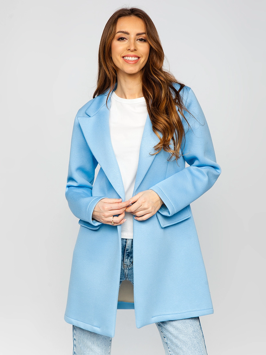 Himmelsblå kort damkappa 20672 från Bolfs kollektion - perfekt för kalla dagar. En kort kappa med knappar adderar det lilla extra till din outfit. En moderiktig look ges av imitationsfickorna med lock på sidorna samt den omvända kragen. Det är en unik kappa med ett enkelt snitt och en semi-elegant karaktär. Den är tillverkad av material av högsta kvalitet, vilket gör den väldigt bekväm och flexibel. Det tidlösa snittet gör att du kommer vilja använda kappan i många år framöver. Passar perfekt både för vardagligt bruk och till mer formella tillfällen. Den ser fantastisk ut ihop med en klänning!