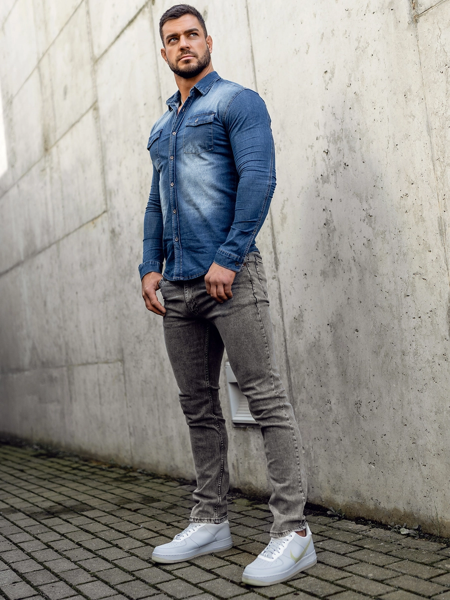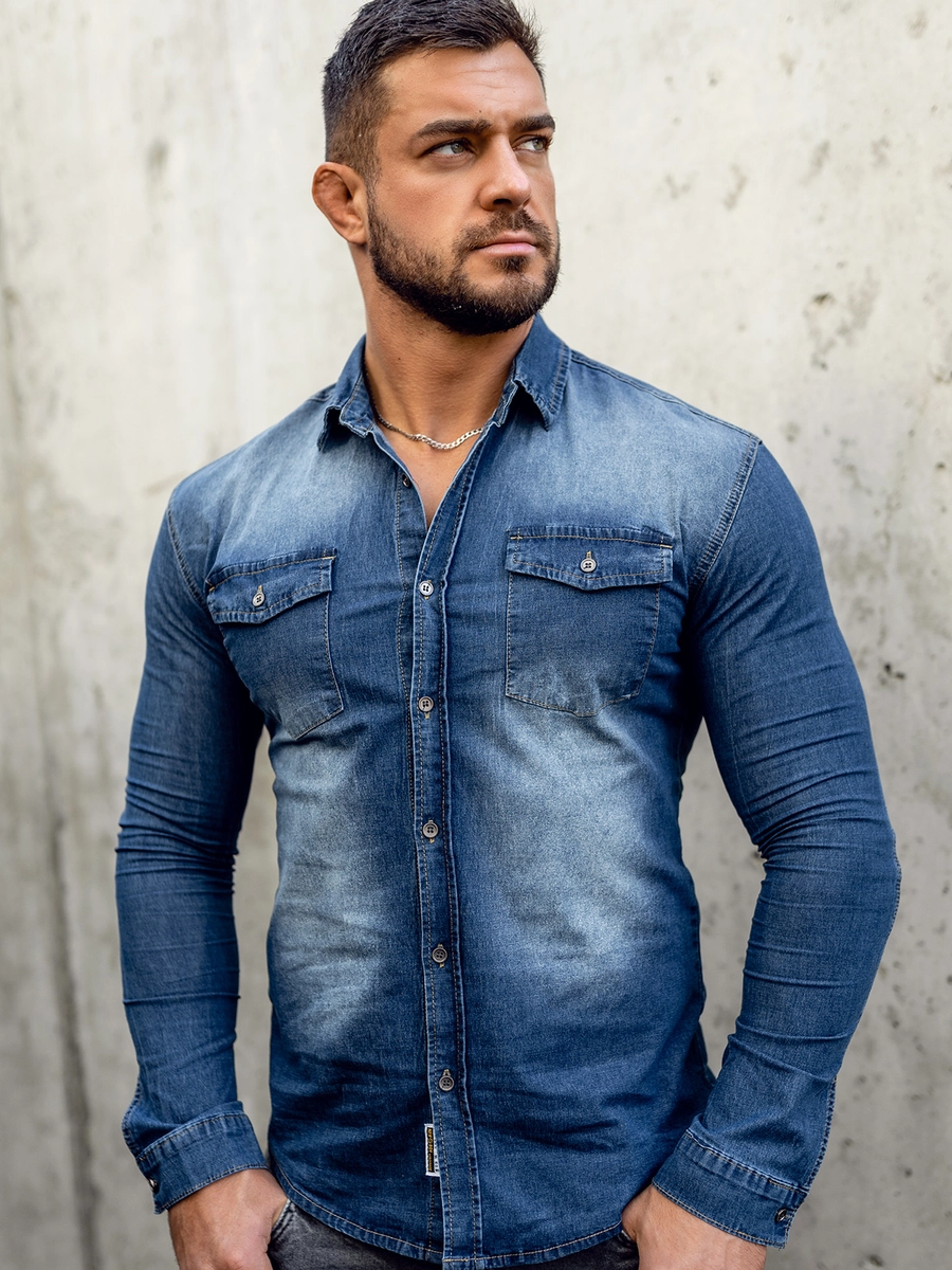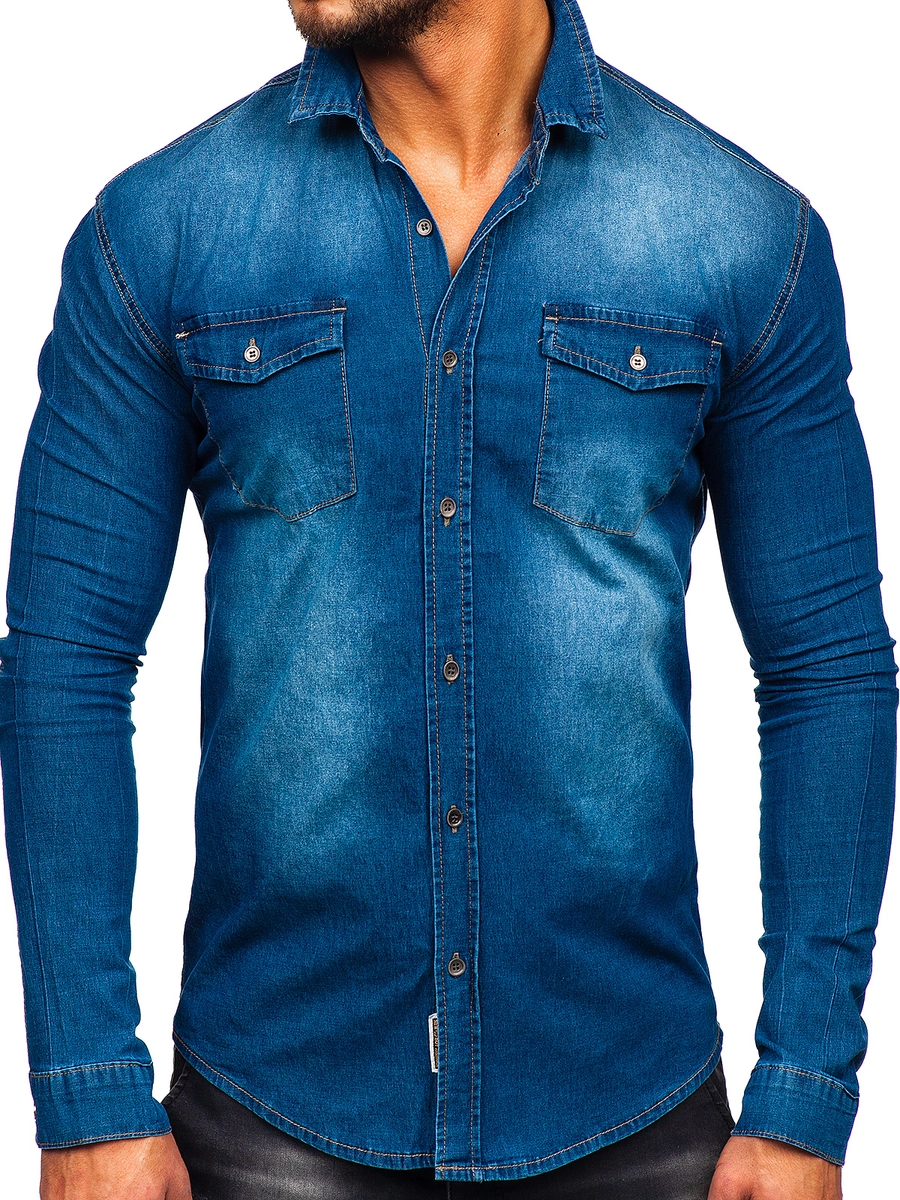 Fin himmelsblå långärmad jeansskjorta MC7051BC från Bolfs Kollektion. Jeansskjortan finns i två snygga färger. Skjortan stängs med knappar och har en "hai"-krage. Tidlös. Skjortan är rundad nertill och passar kroppen perfekt. Den här modellen har två praktiska bröstfickor. Den är tillverkad av material av högsta kvalitet, vilket gör den väldigt mjuk och otroligt bekväm. Skjortan passar perfekt till flera olika tillfällen. När du ska ut med vänner, på middagsdate eller på en spontan resa, du kommer alltid se fenomenal ut i den. Skapa din perfekta matchning med jeans och njut av denim-stilen!