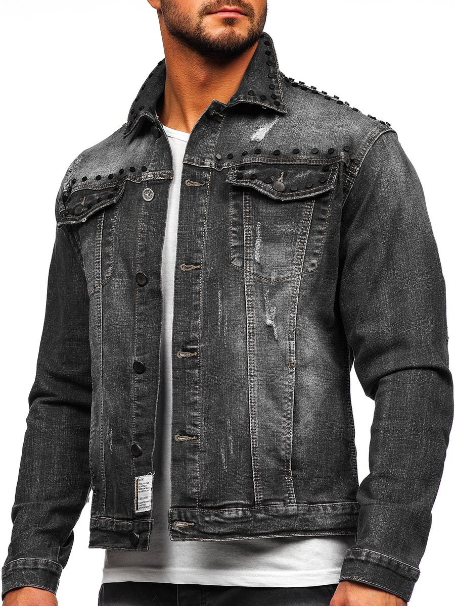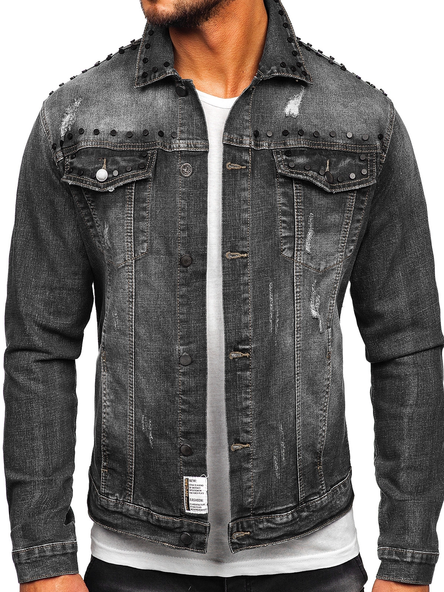 Riktigt snygg svart herrjeansjacka MJ504N från Bolfs kollektion. Den stängs med knappar och har dekorativa tryckknappar. Den har två bröstfickor med knappar. De är tillverkade av 65% bomull, 33% polyester och 2% elastan. Jackan har knappar och snygga nötningar. Det finns knappar på ärmarna. Tack vare dess mångsidighet kan den lätt matchas med många olika stilar. En snygg jacka passar perfekt för övergångssäsongen, vår eller höst. Du kan skapa snygga outfits genom att addera jeans eller joggers.