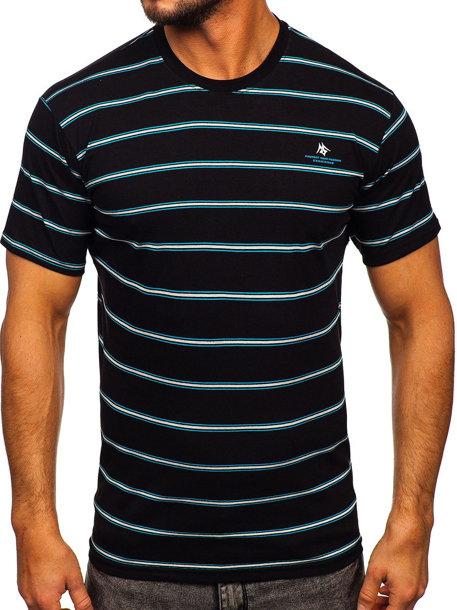 Cool svart herr T-shirt 14952 från Bolfs kollektion. Den finns i åtta olika färger vilket gör det lätt att matcha färg till din outfit. Rakt skuren T-shirt med rund hals, passar alla kroppsformer. Den är tillverkad av 100% bomull, vilket gör den väldigt bekväm. Perfekt för sportiga stilar och som komplement till många olika vardagsstilar. Ska du ut med vännerna, använd ihop med jeans och en skinnjacka. Lägg till sweatpants och en sweatshirt för att skapa en sportig stil.